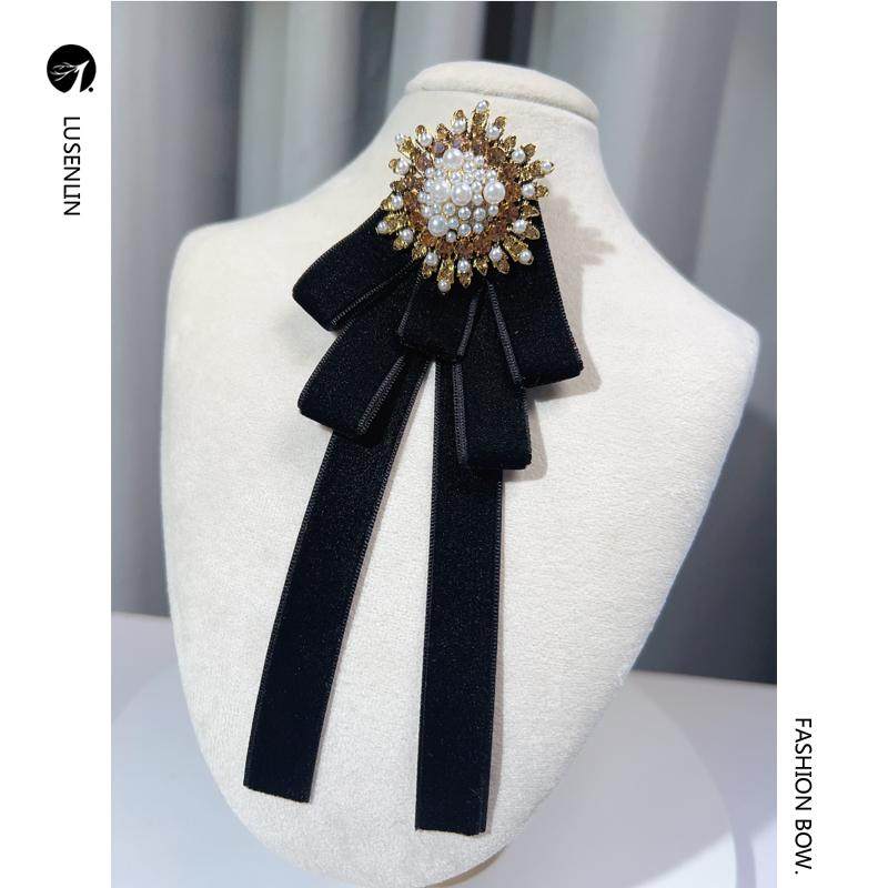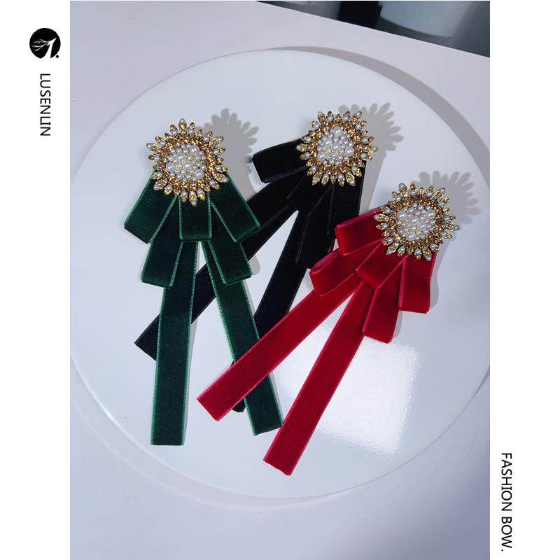 韩版丝绒蝴蝶结飘带JK领结女学院风珍珠复古胸针英伦领花衬衫配饰
