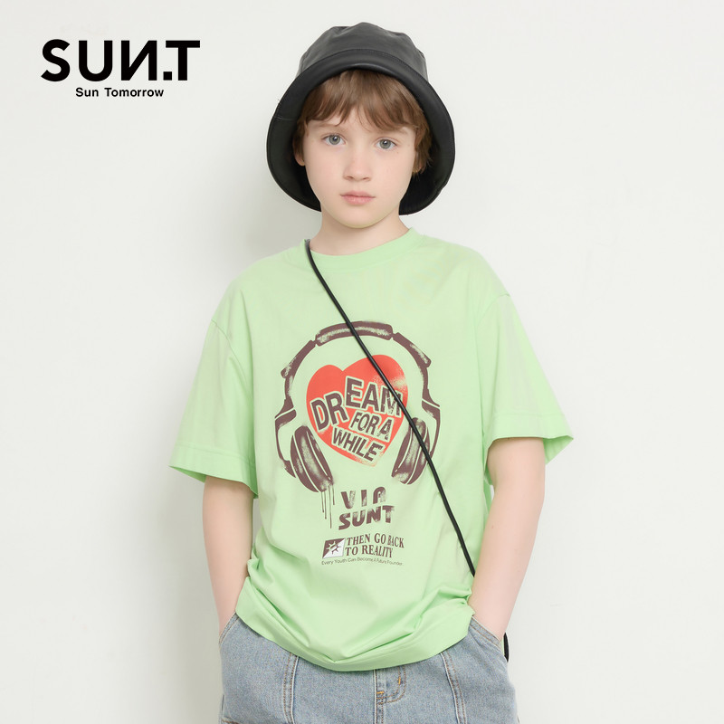 suntomorrow2025新款潮流印花T恤男童短袖中大童宽松儿童圆领上衣
