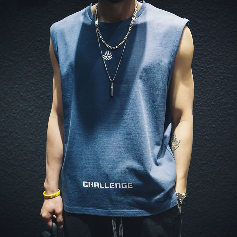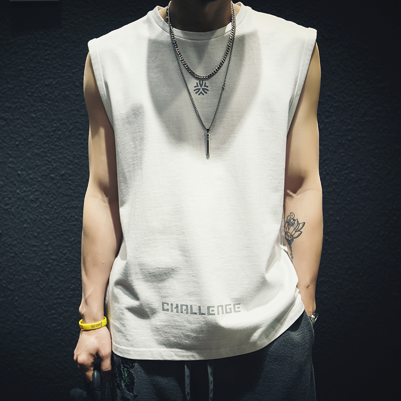 夏季纯棉无袖t恤背心男宽松潮牌ins坎肩短袖男生运动大码上衣潮