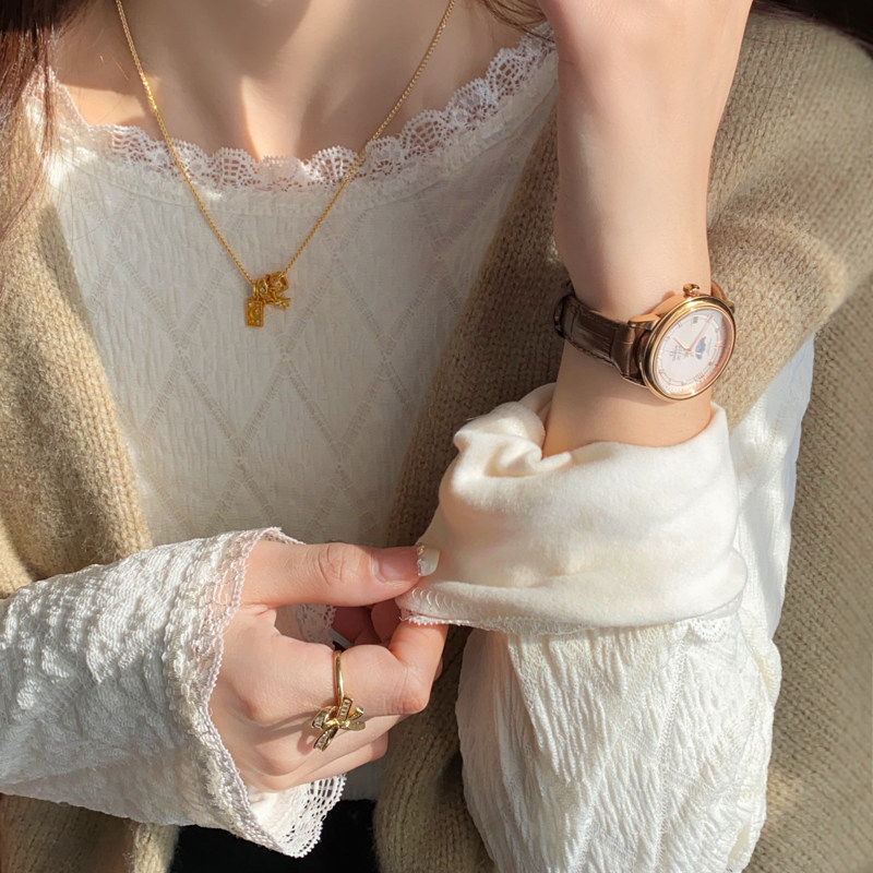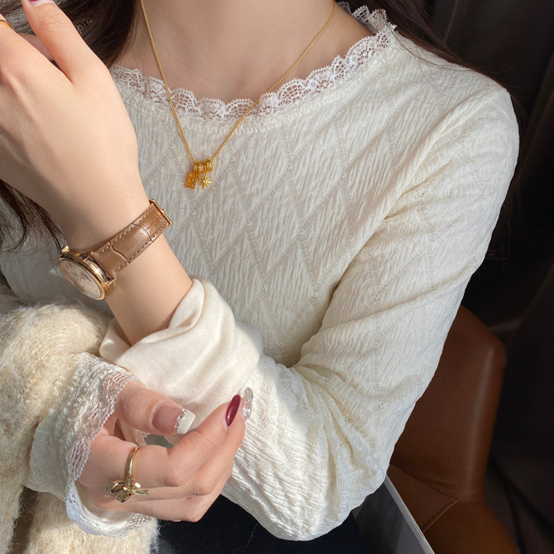 杏色蕾丝加绒加厚打底衫女内搭2025年秋冬季新款长袖气质修身上衣