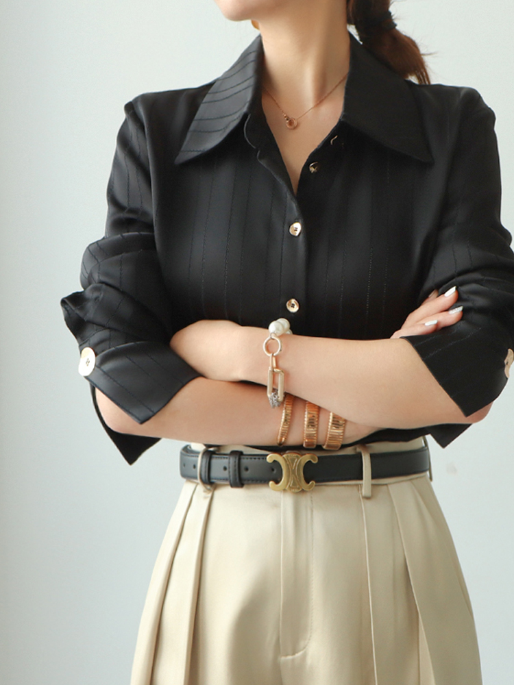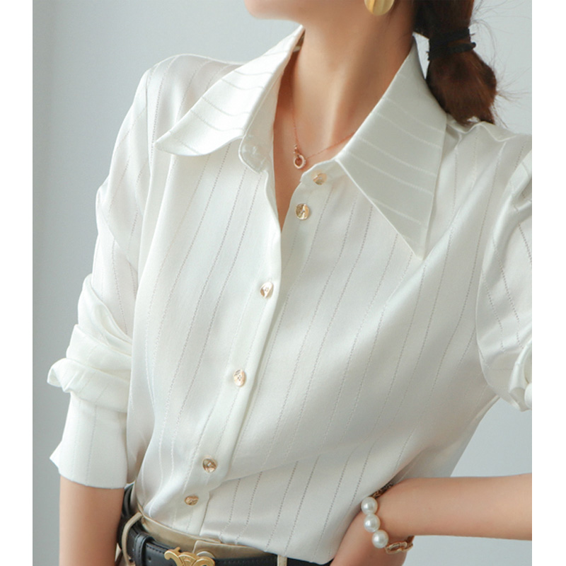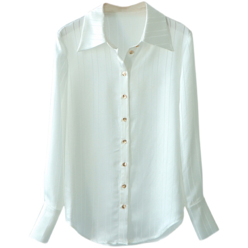清仓捡漏品牌折扣店专柜女装长袖缎面衬衫女复古港味雪纺上衣衬衣