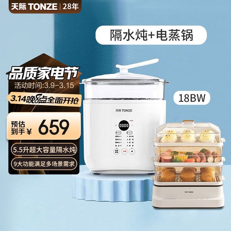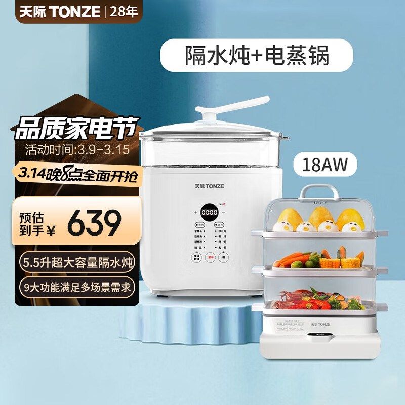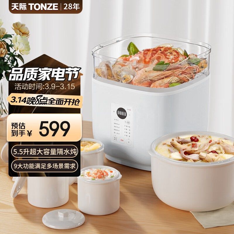 天际电炖锅5.5L一锅五胆家用全自动煲汤上蒸下煮陶瓷内胆隔水炖锅