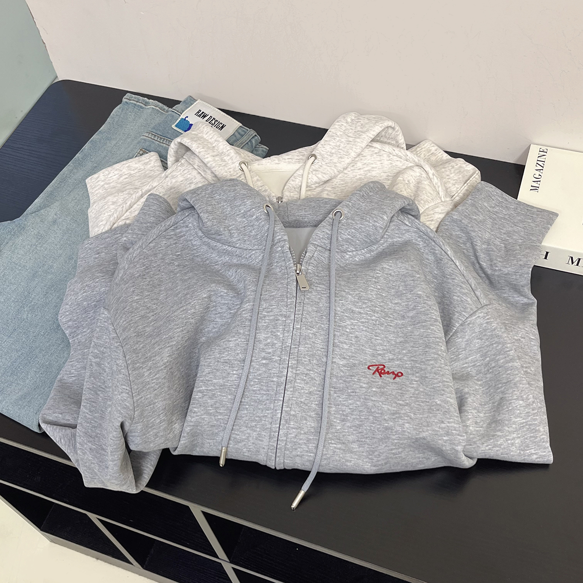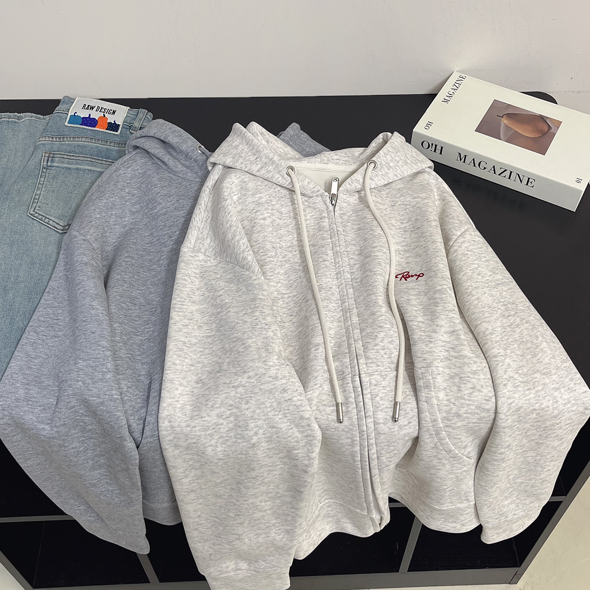 韩系复古刺绣字母连帽领拉链卫衣女秋季休闲显瘦宽松开衫外套女