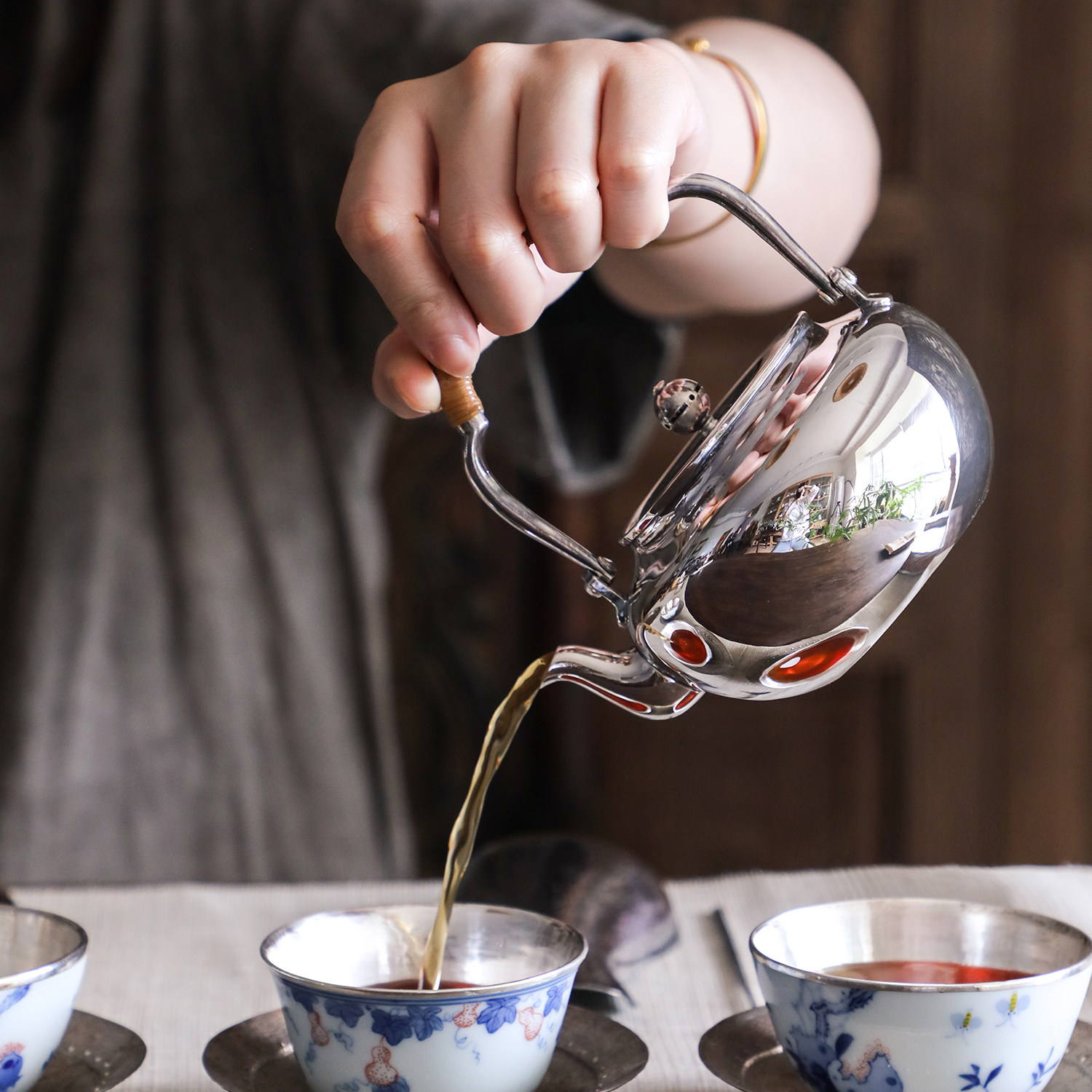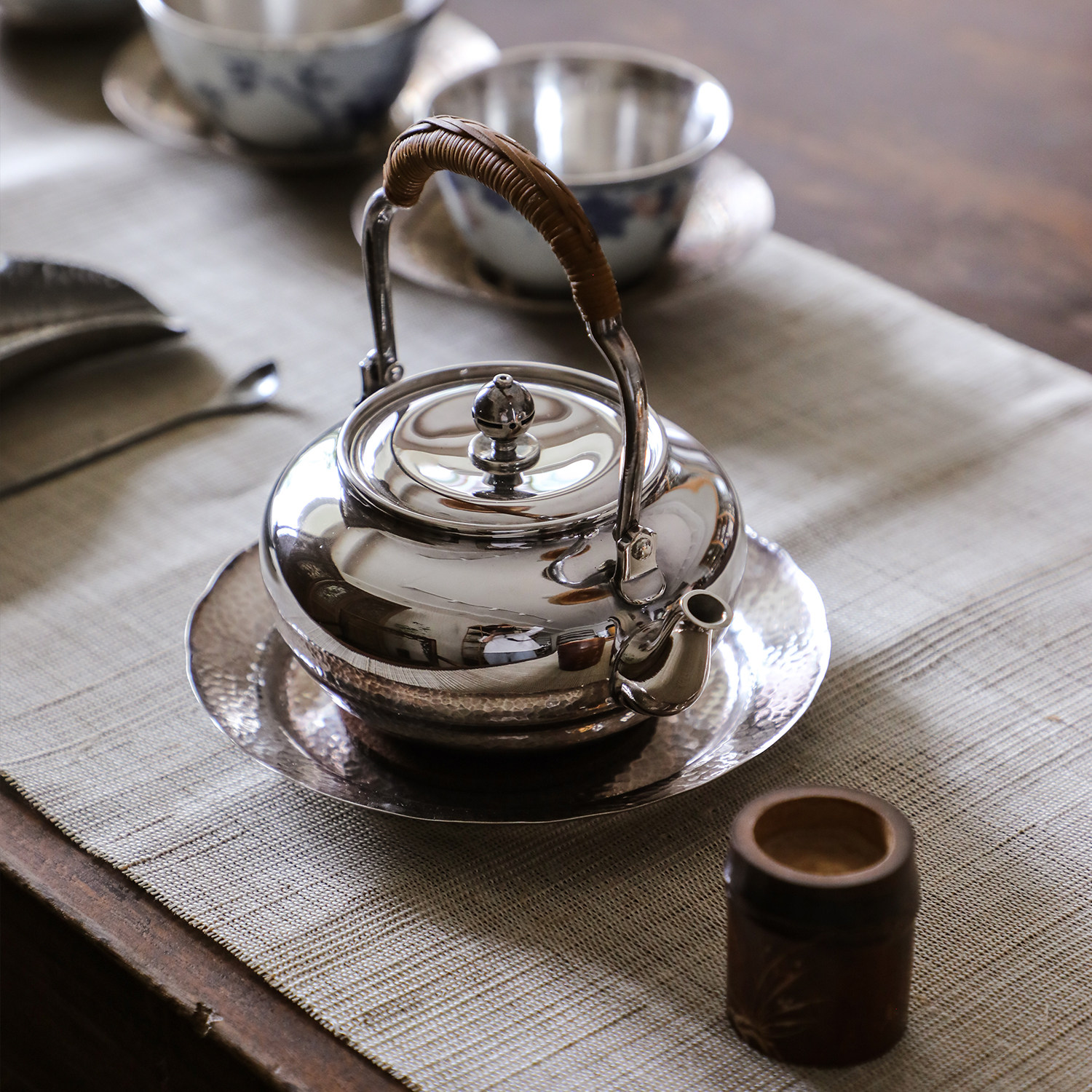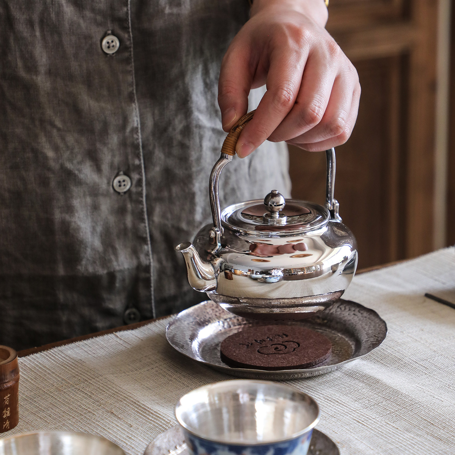 纯银时代 青云提梁泡茶壶食品级足银999纯手工家用银茶壶350ml