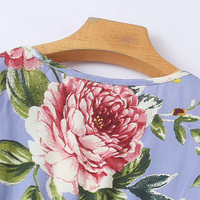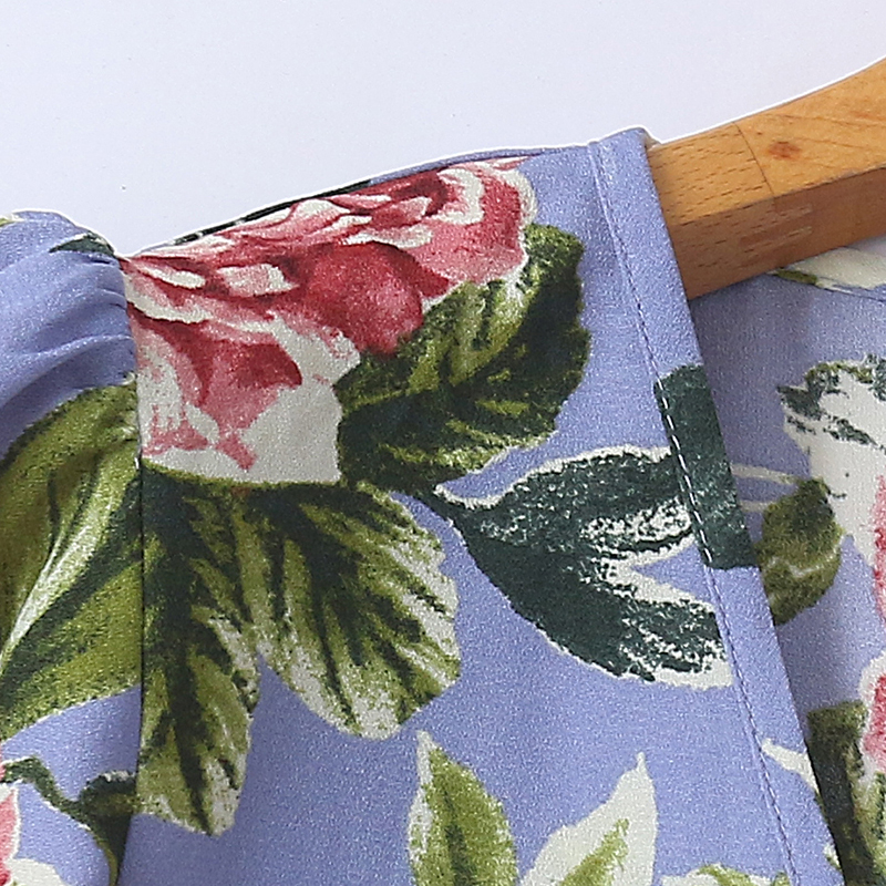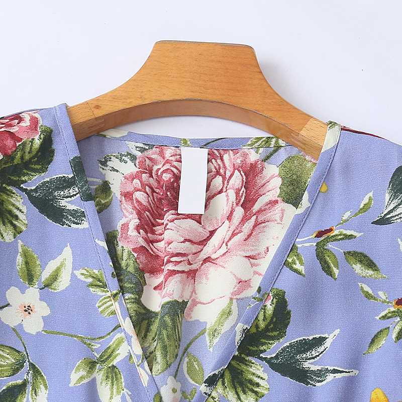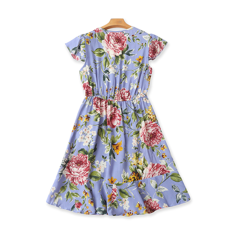 外贸V领碎花连衣裙 夏季新款收腰A字显瘦时尚女装中长款裙子21011