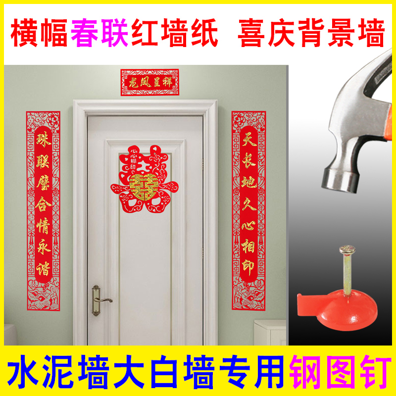红色图钉门帘横幅条幅春联窗纱对联墙面固定钉背景墙水泥钢钉墙钉