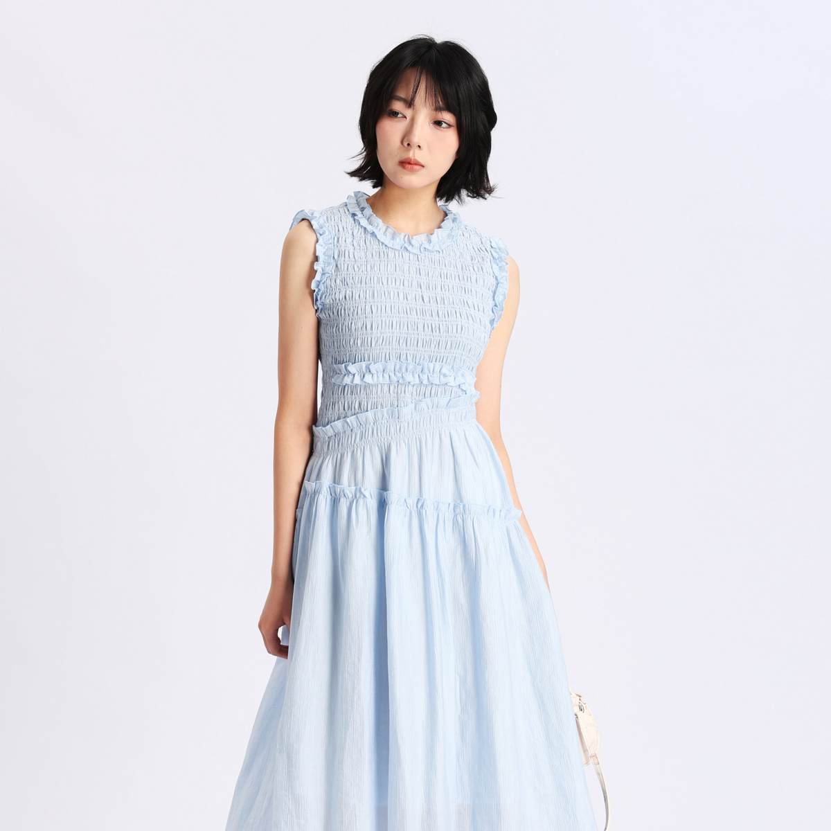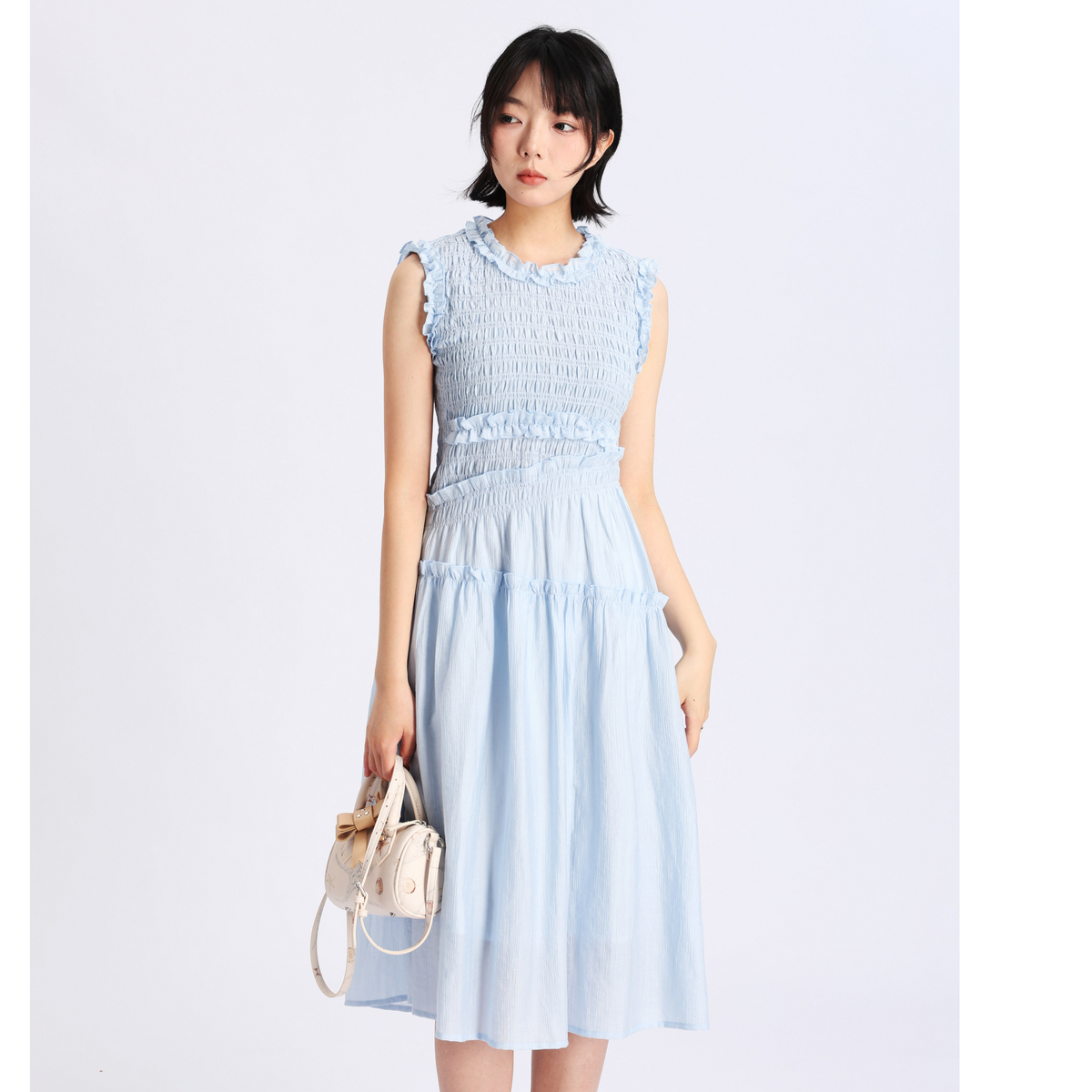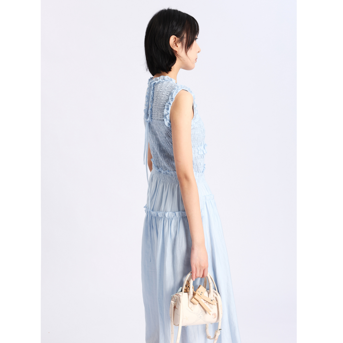 西町村屋法式无袖打揽连衣裙女装夏季新款气质长款裙子XAAB10158