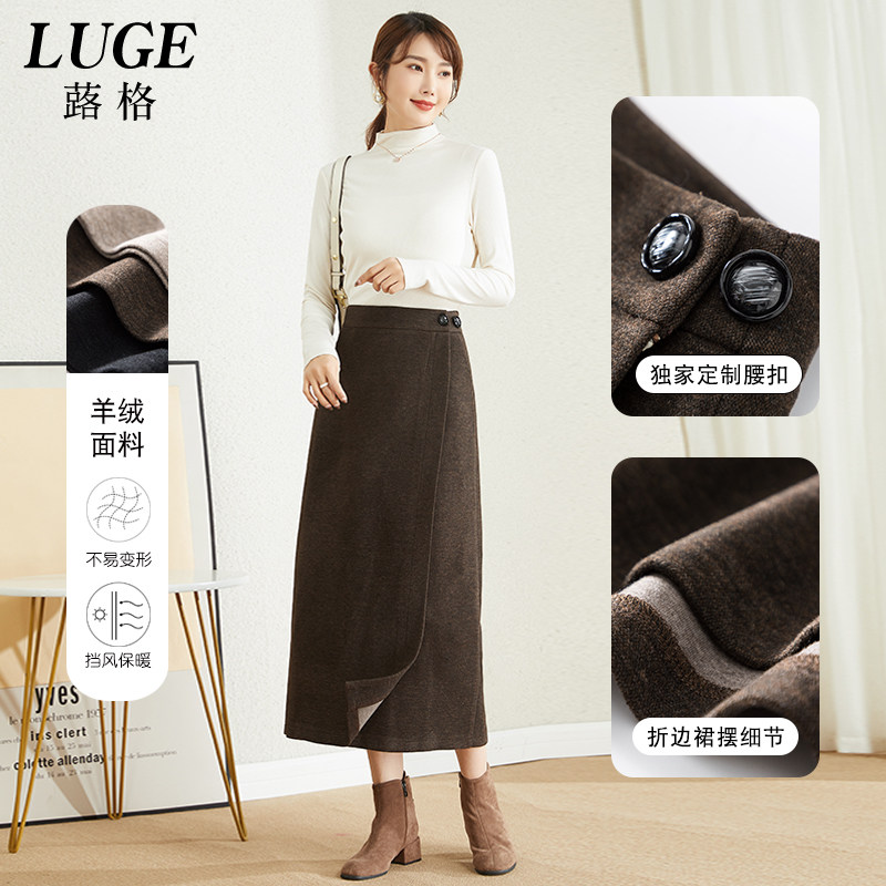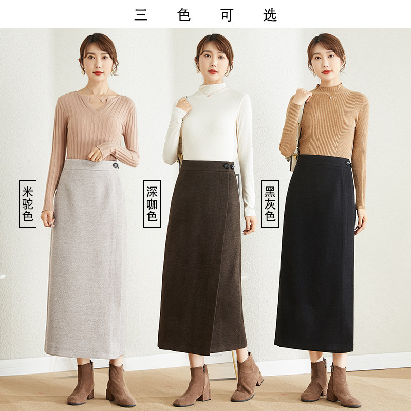 2025新款一片式裙子女秋冬长裙围裹式半身裙女士冬季加厚呢绒裹裙