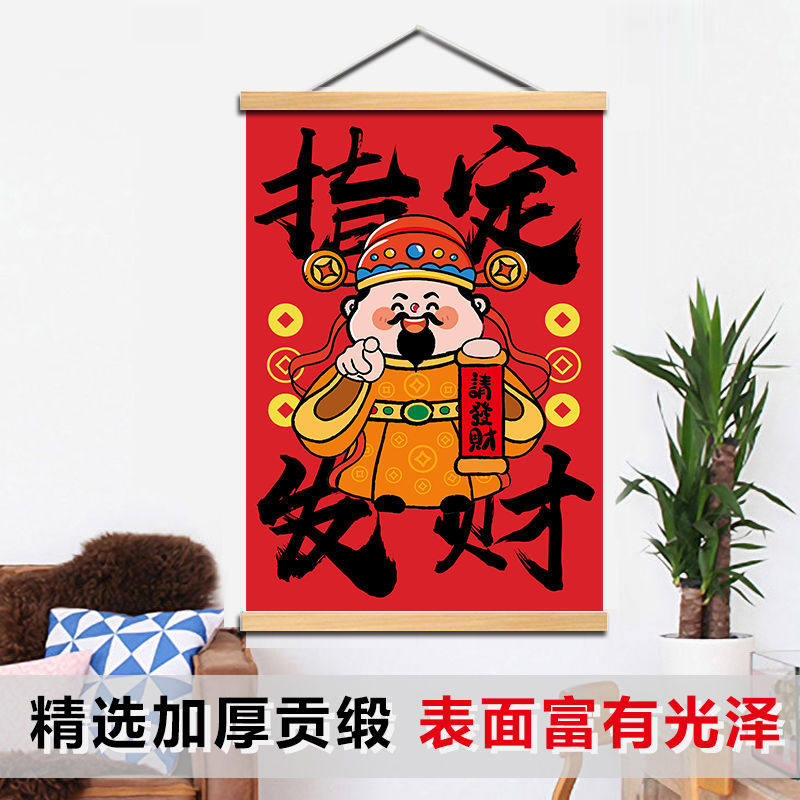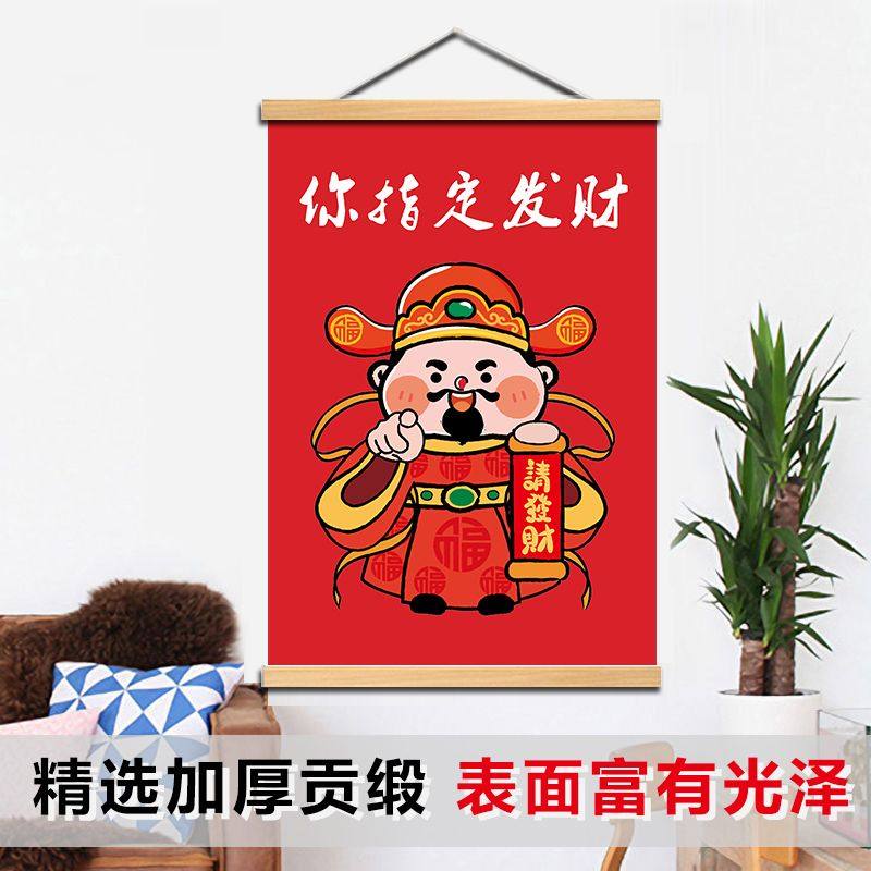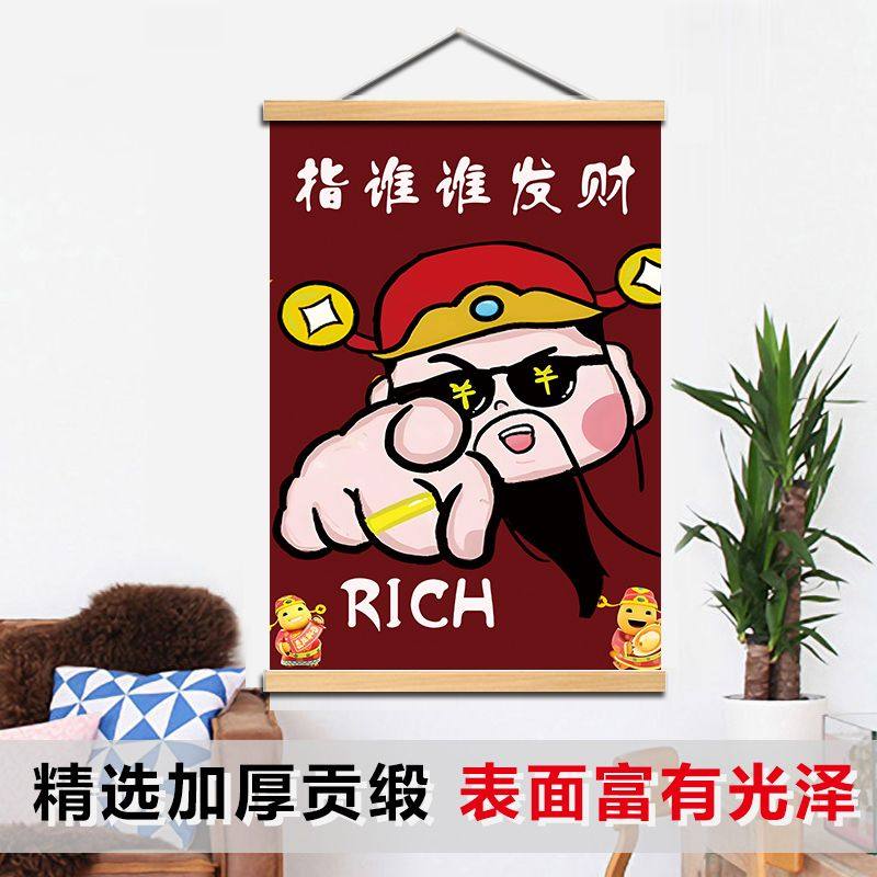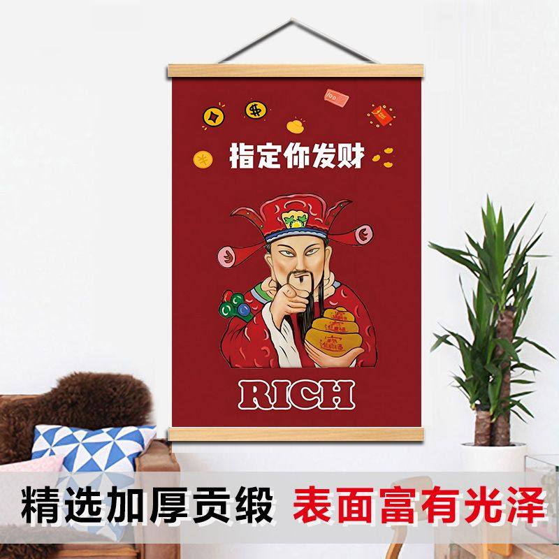 装饰画遮挡店墙财神爷指谁谁发财挂画定制财神海报挂画挂艺术创意