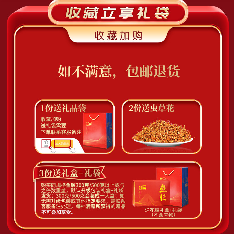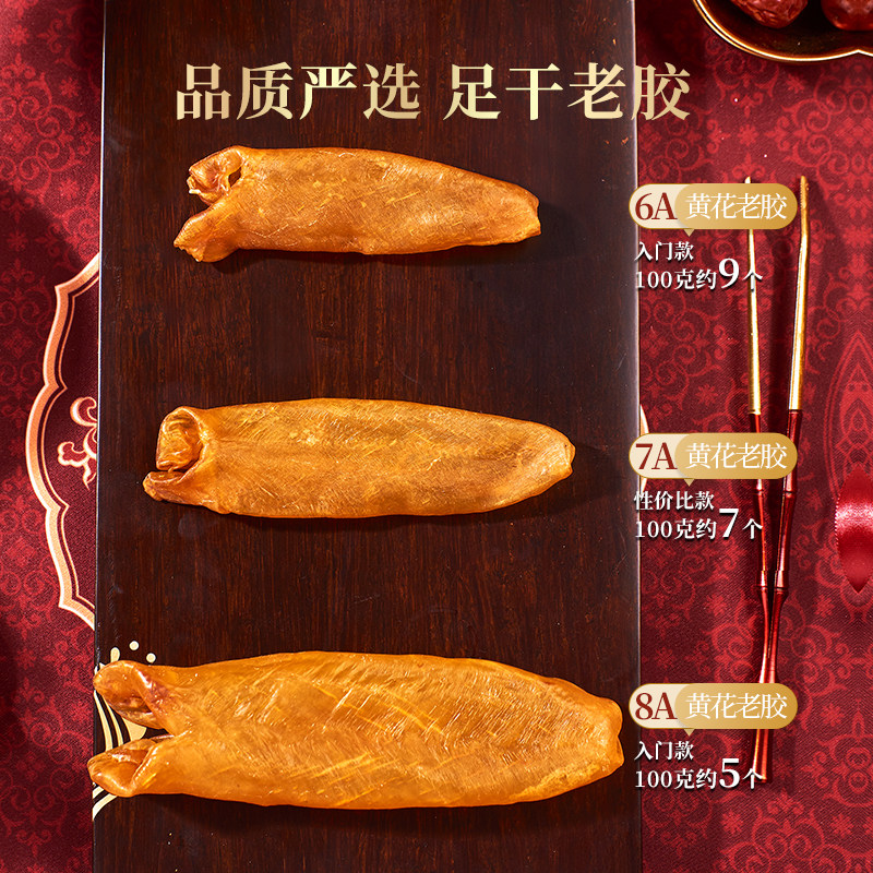 北海印象花胶鱼胶干货正品100g陈年鱼肚黄花老胶干花胶滋补煲汤