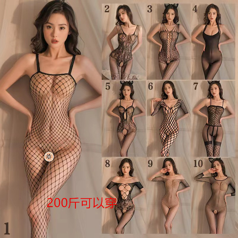 大码性感渔网袜女200斤镂空连体情调开档网衣2023年网红爆款黑丝