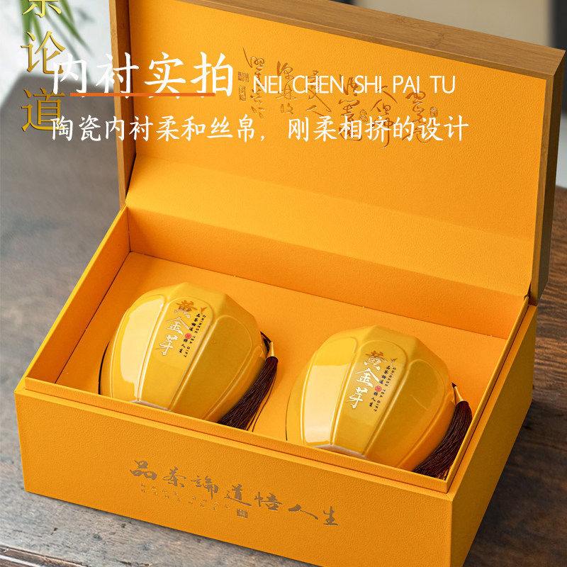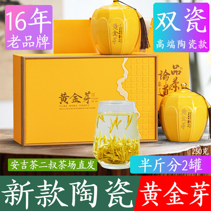 茶二叔2025年正宗安吉黄金芽陶瓷礼盒装黄金叶新茶白茶明前特级