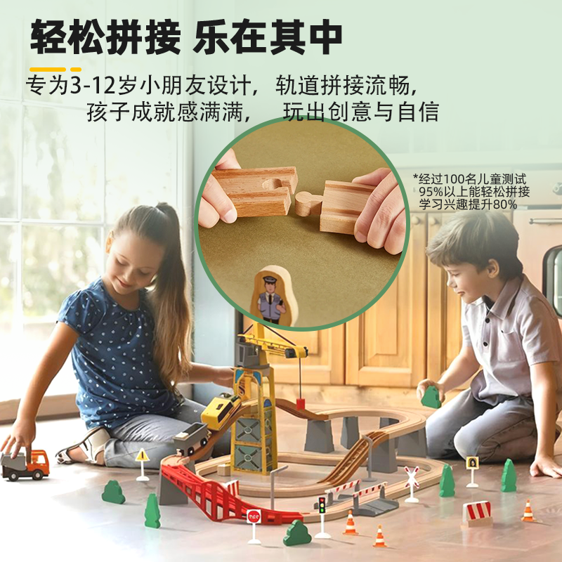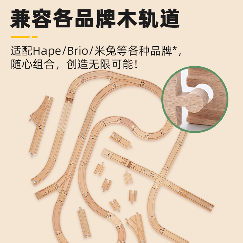 儿童木质火车轨道配件车玩具积木拓展包兼容电动hape木头小火车男