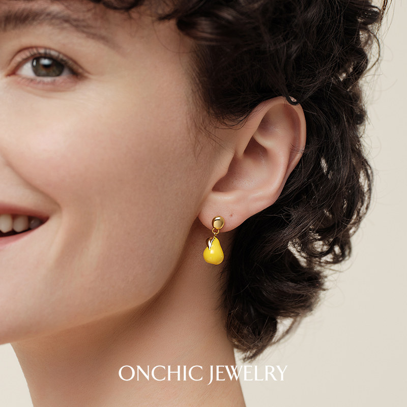 明星同款Onchic慕斯甜梨耳钉女高级感耳坠小众设计质感耳环度假