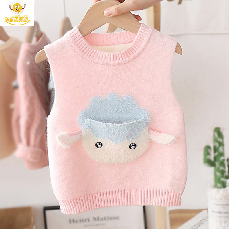 女童保暖加绒加厚毛衣马甲针织