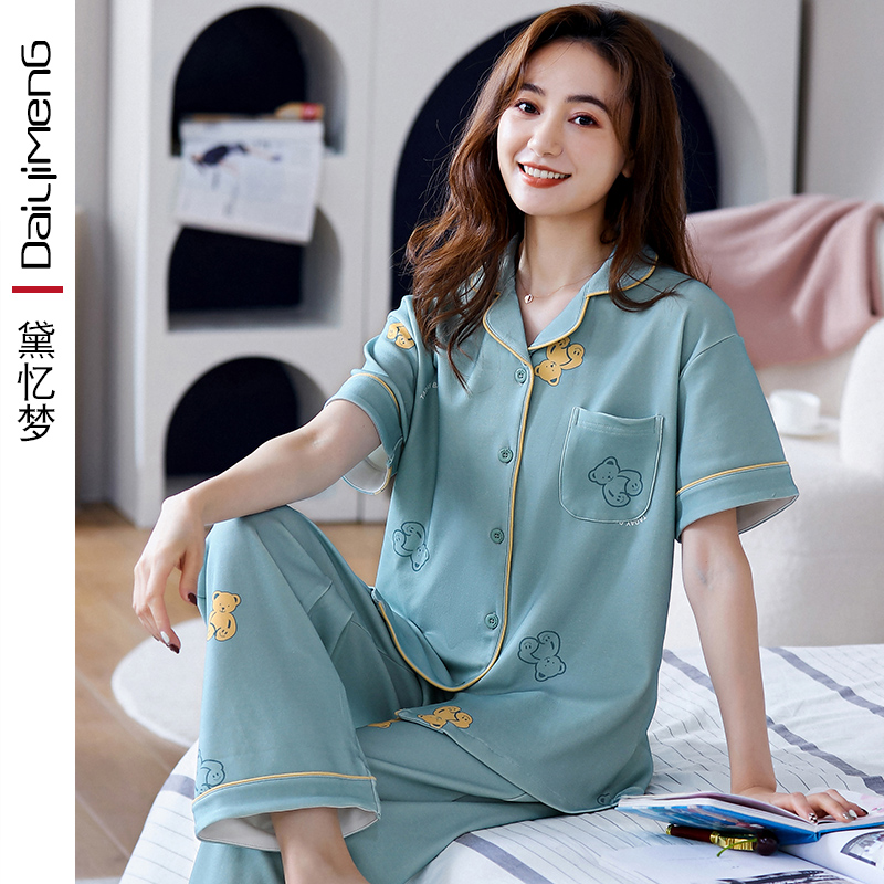 2025新款睡衣女款夏季纯棉开衫夏款短袖长裤夏天可外穿家居服套装