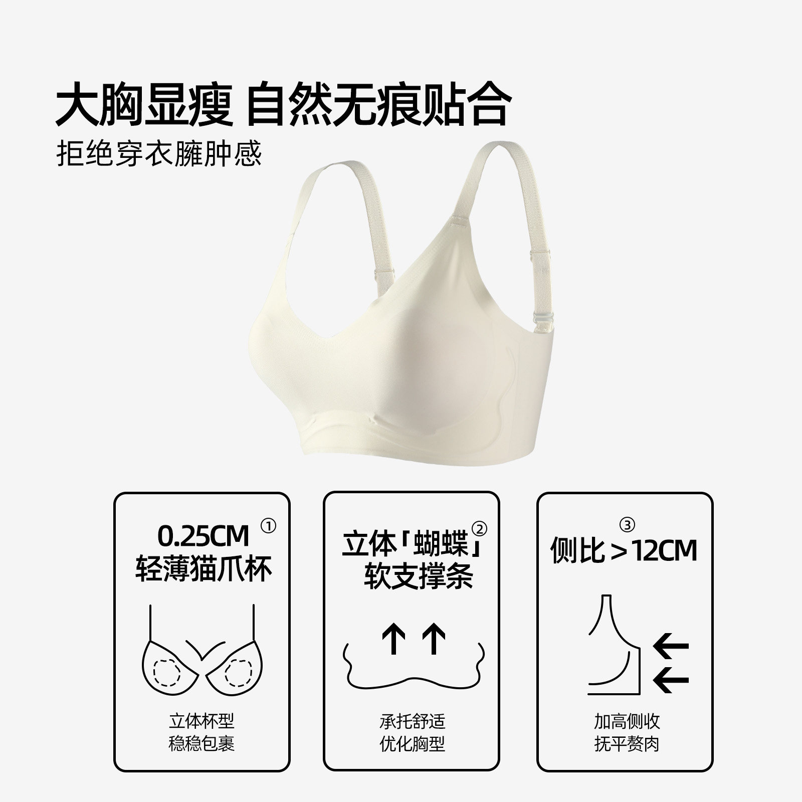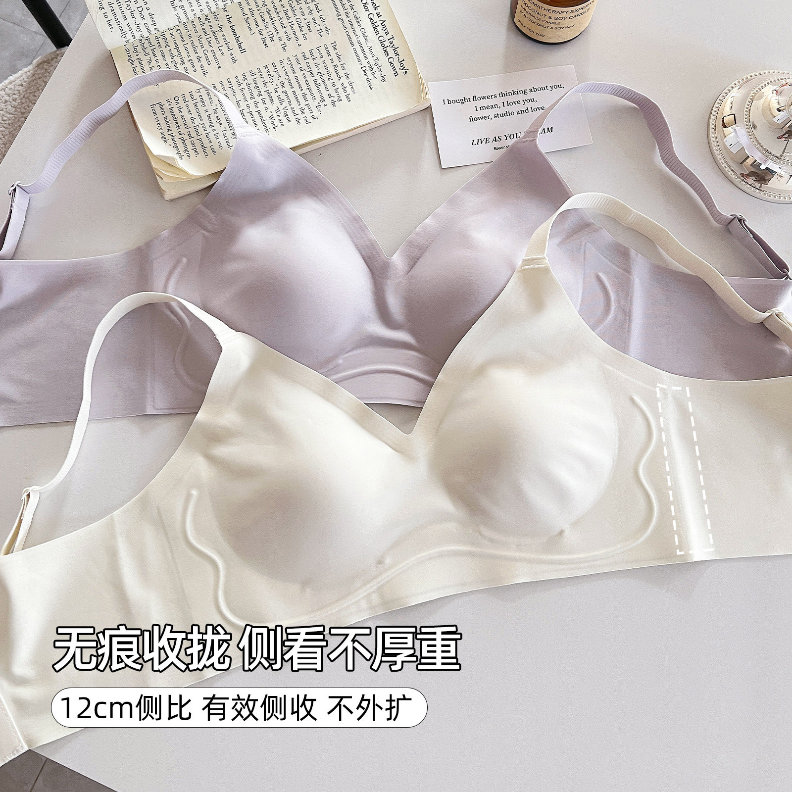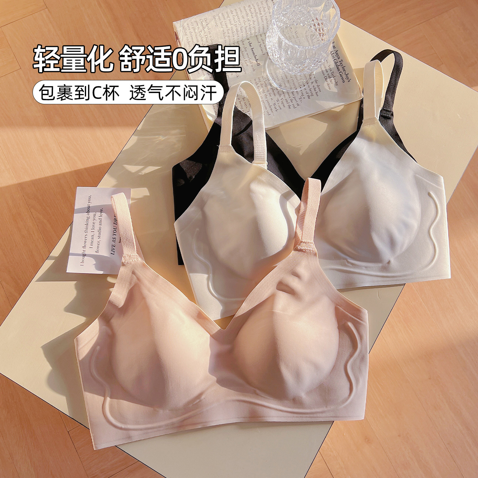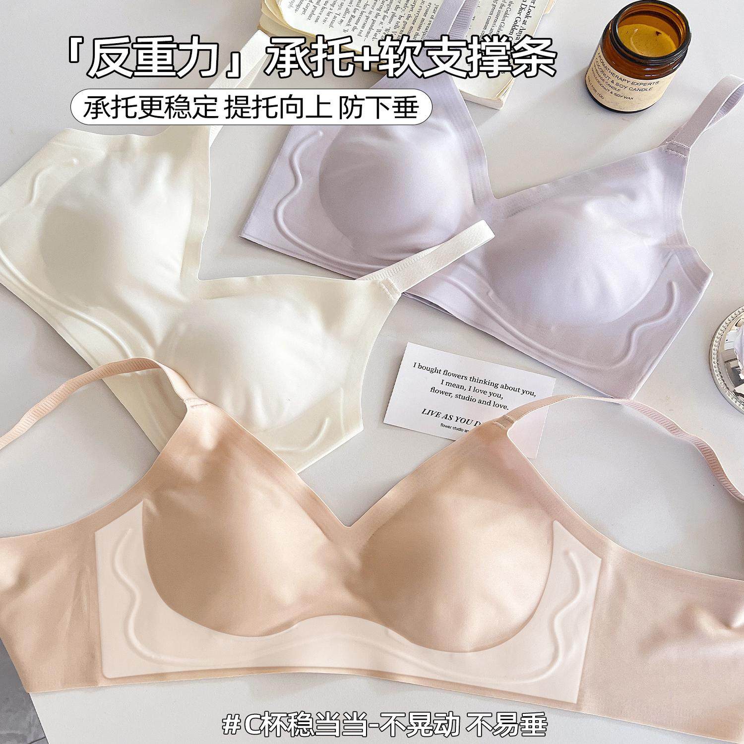 六只兔子无痕内衣女大胸显小轻薄款舒适无钢圈收副乳软支撑文胸罩