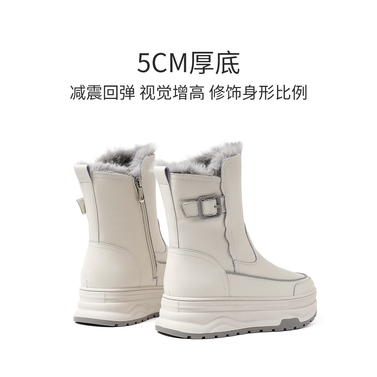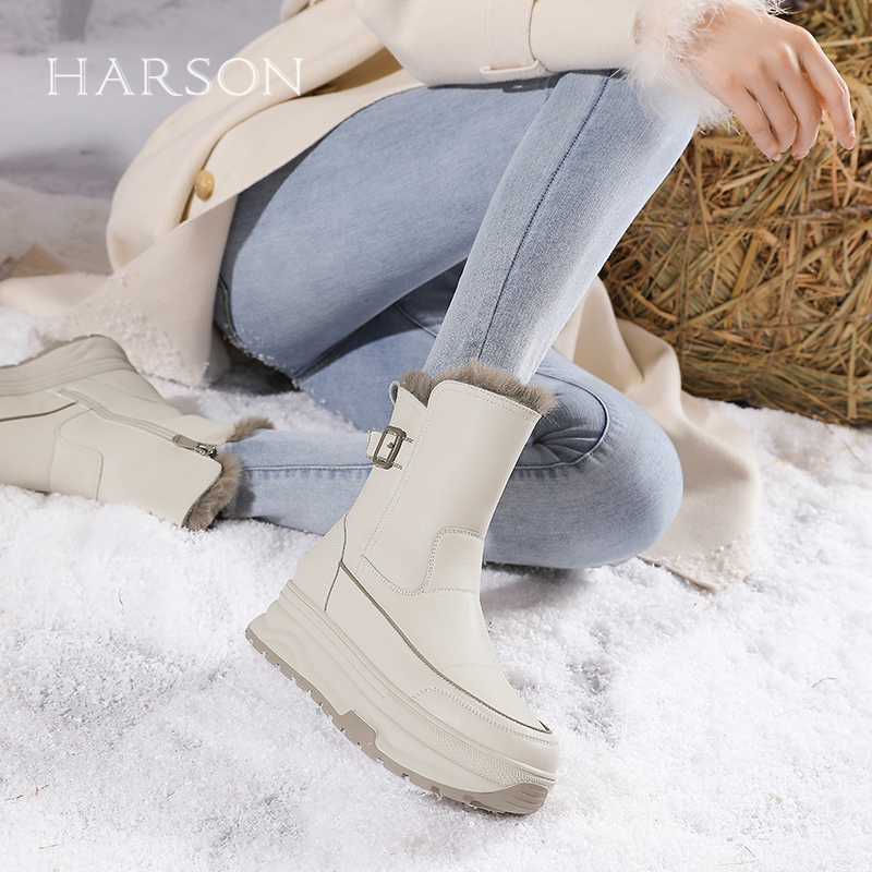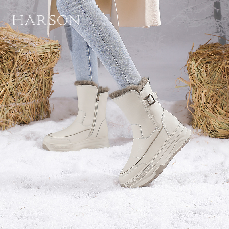 哈森厚底雪地靴女冬季新款加绒休闲短筒靴加厚棉鞋HWA240179