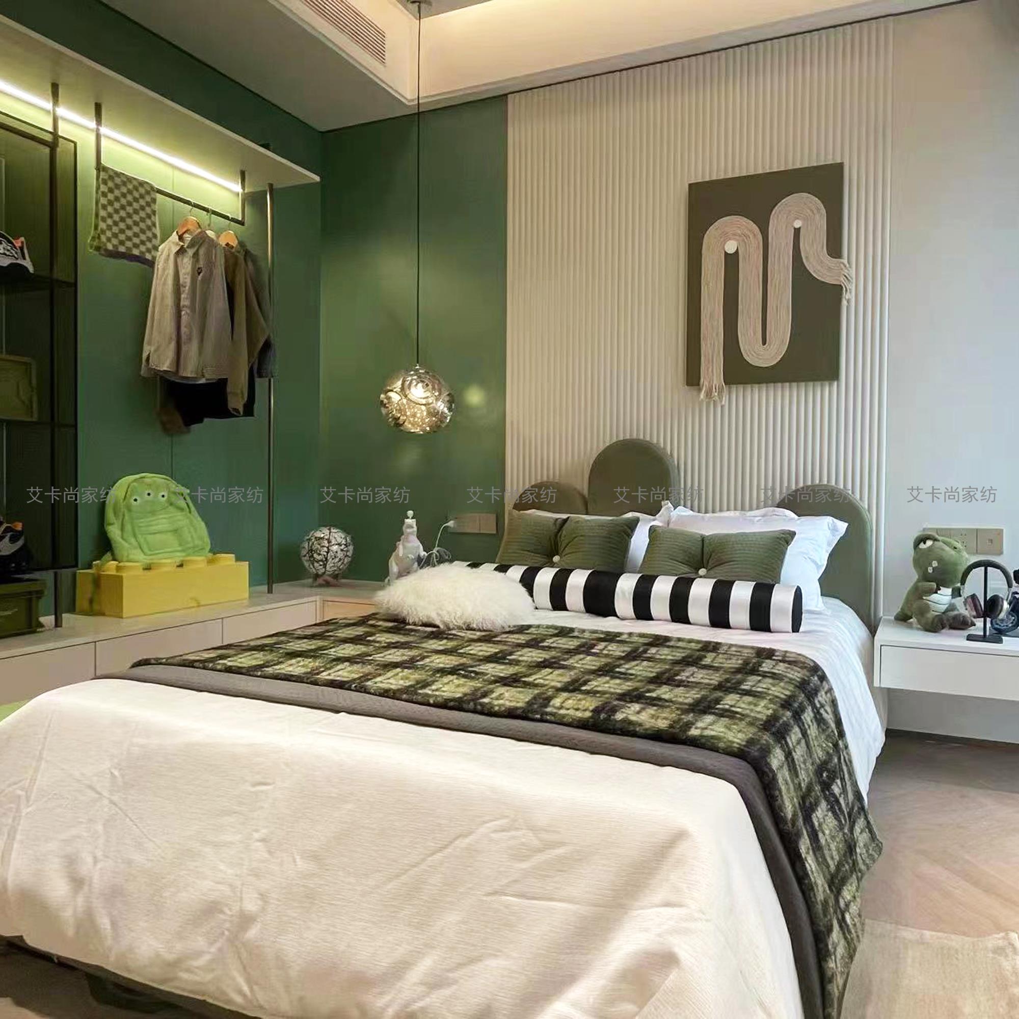 现代轻奢样板间绿色床尾毯儿童男孩房搭毯酒店民宿床旗床尾巾搭巾