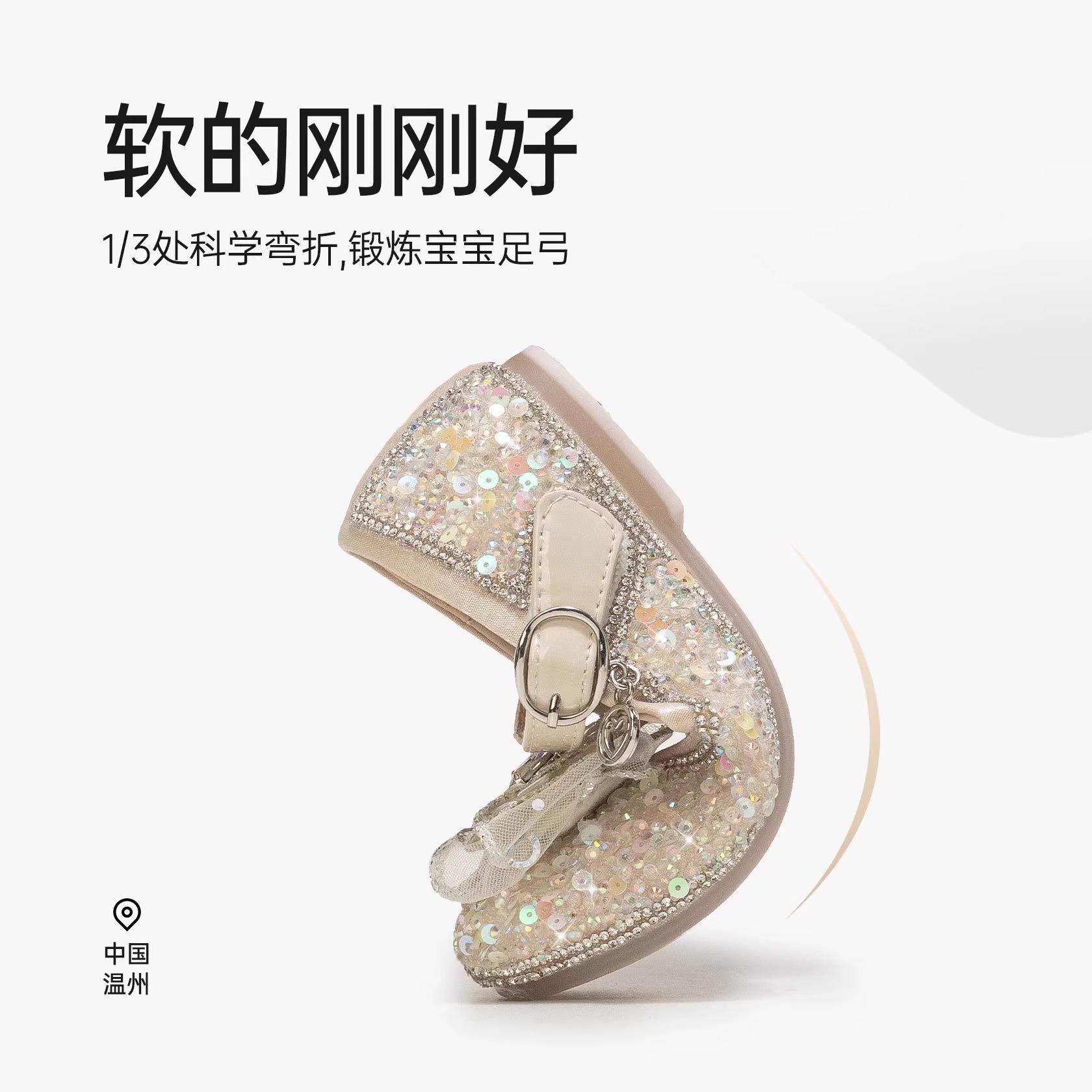真皮女童公主鞋闪亮水晶鞋2025春季新款儿童鞋子软底小女孩礼服鞋