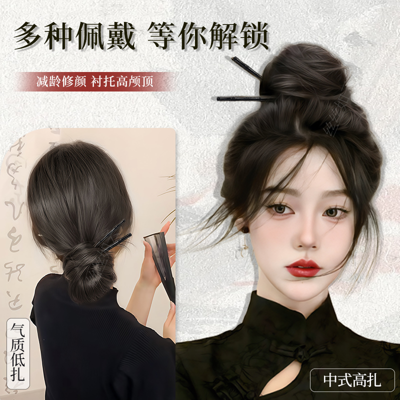 丸子头假发新中式自绕花苞头仿真发汉服古风发圈蓬松增发量假发包