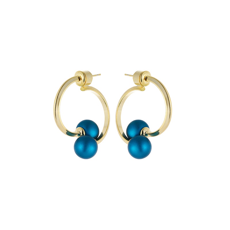 对珠耳环韩国东大门同款铜微镶蓝色珍珠耳钉女 925银针新款耳饰