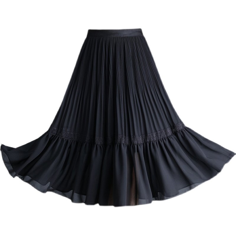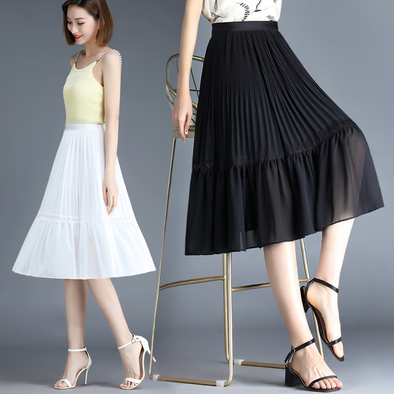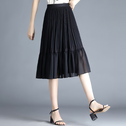 2021新款雪纺半身裙女夏中长款高腰气质垂感百褶裙打底裙a字裙子