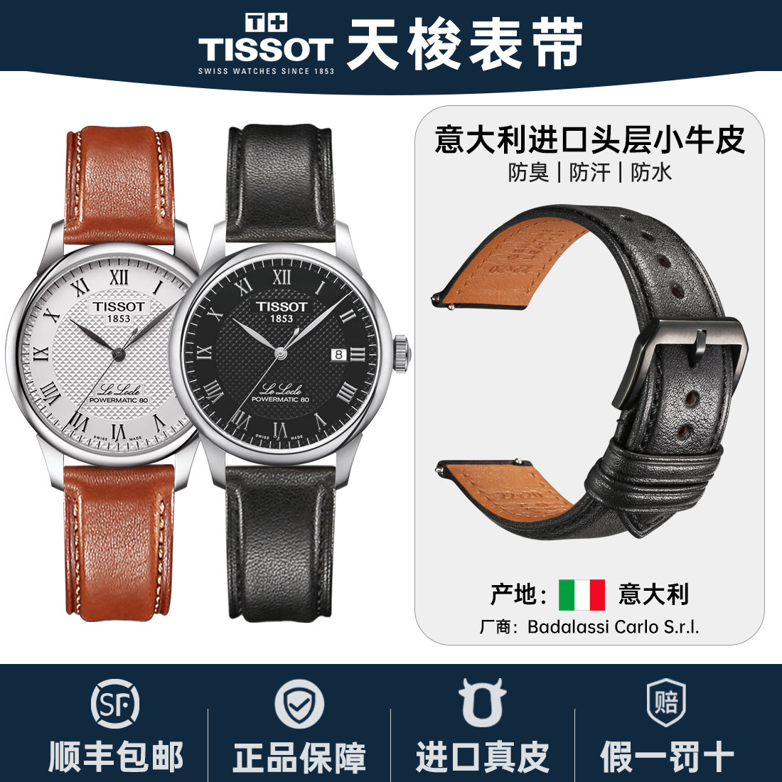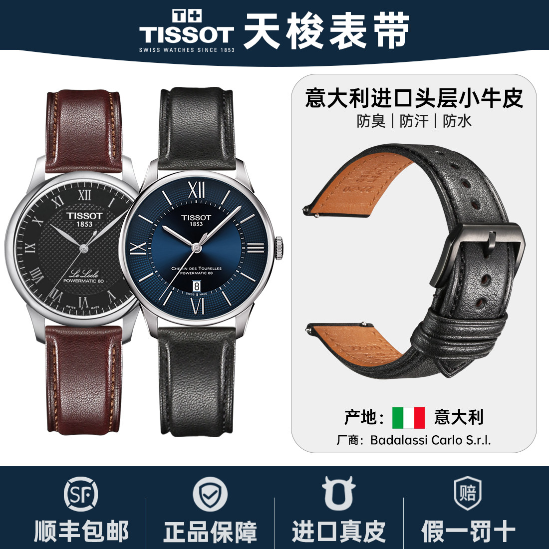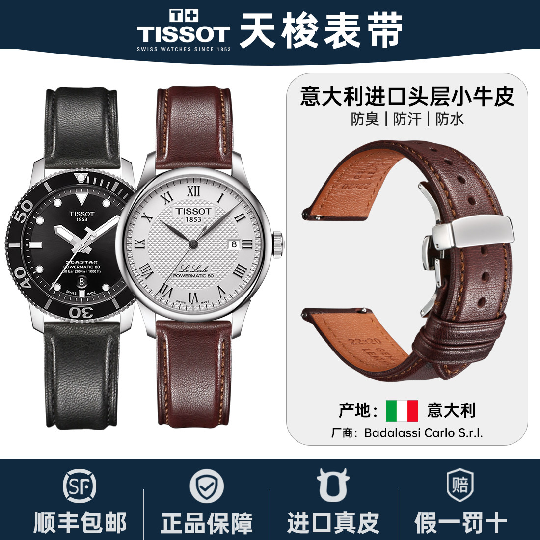 天梭手表表带男真皮适用Tissot1853力洛克杜鲁尔海星牛皮表带配件
