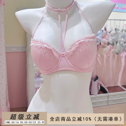 纯欲甜美挂脖性感蕾丝内衣宫廷风缎面少女小胸显大舒适qq文胸套装