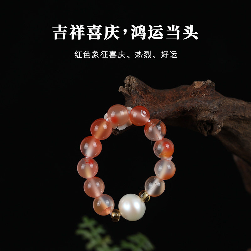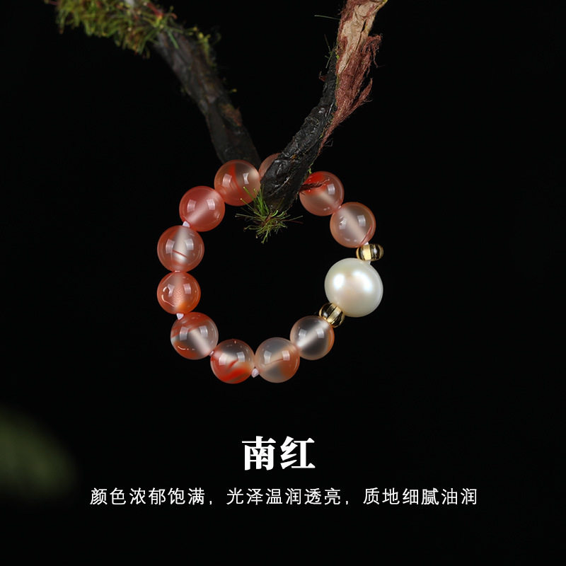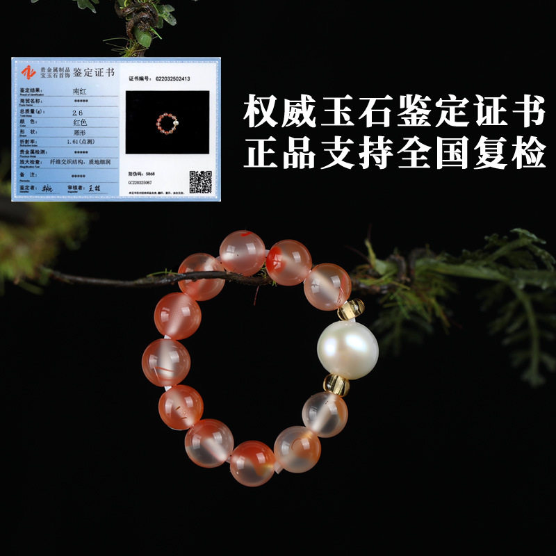 唐今玉「红珠玉露戒」天然高冰飘南红戒指珍珠戒指冰度高飘花美