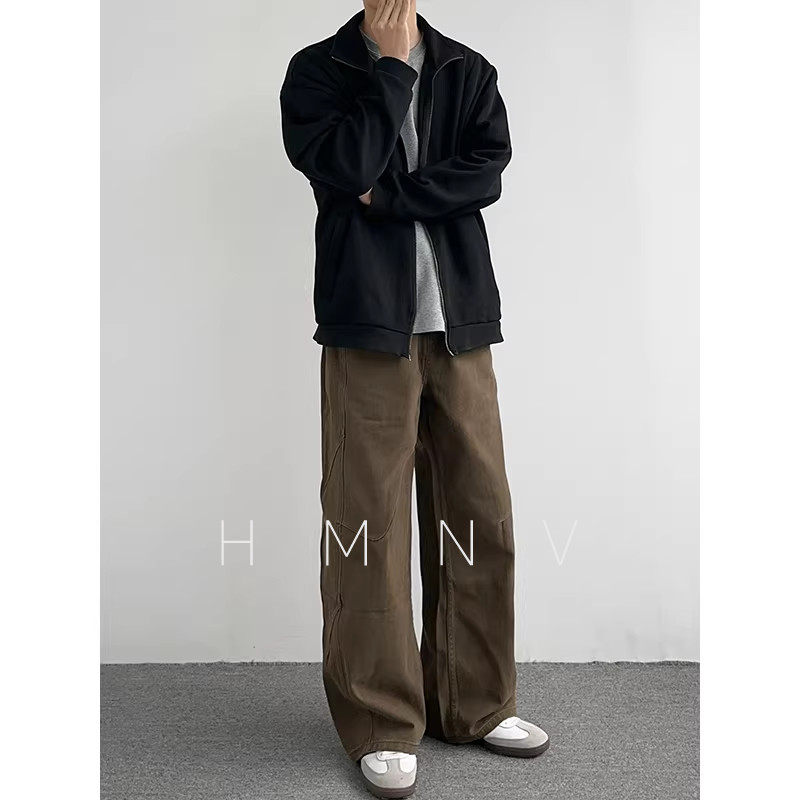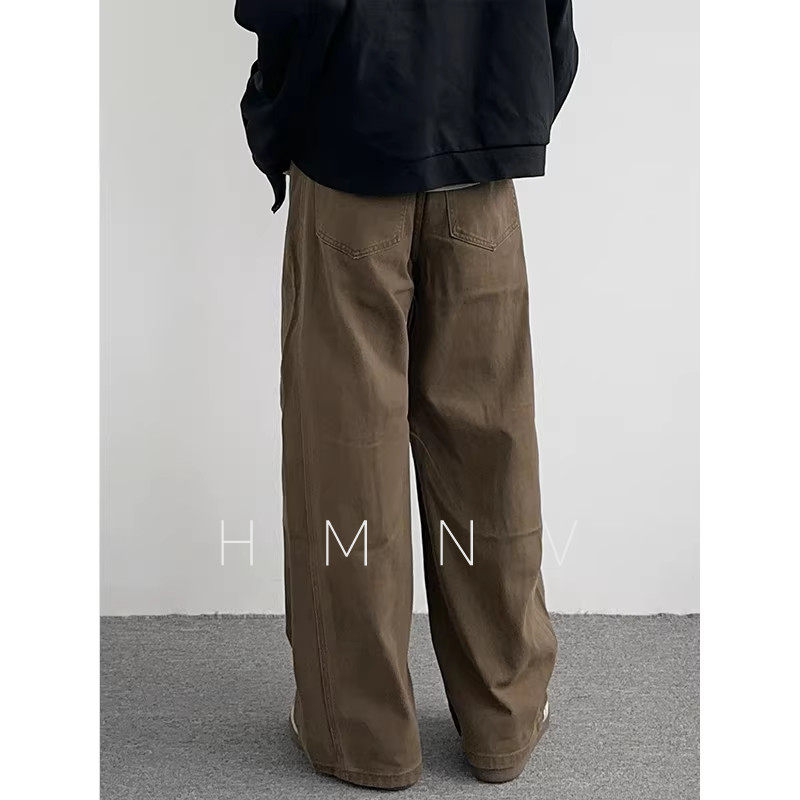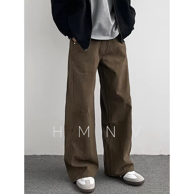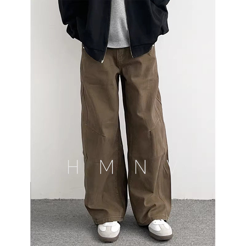 HMN Studio美式复古解构设计感水洗工装裤男宽松休闲褶皱直筒垂感