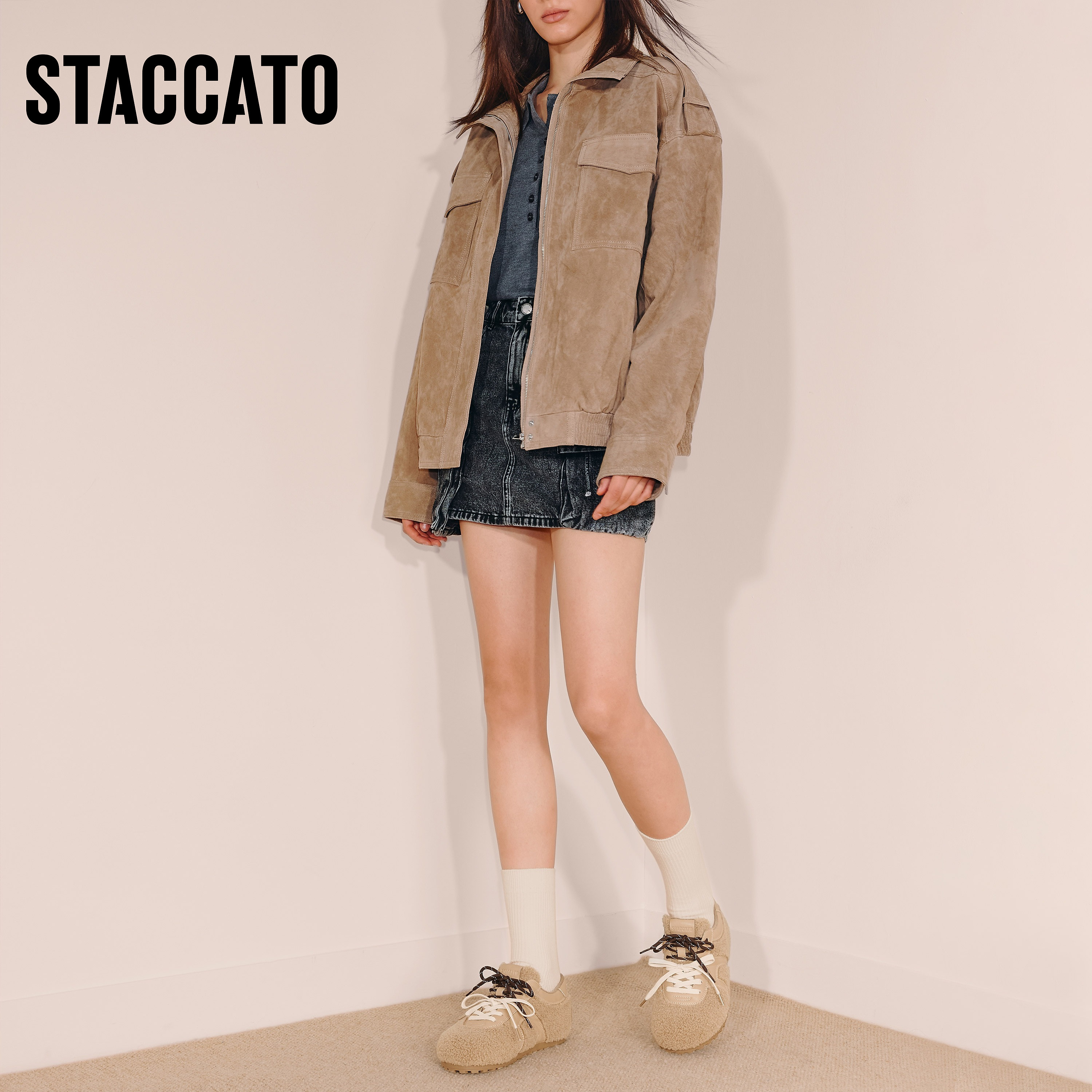 思加图冬季新款复古毛毛鞋德训鞋保暖平底鞋加绒女鞋S2901DM5