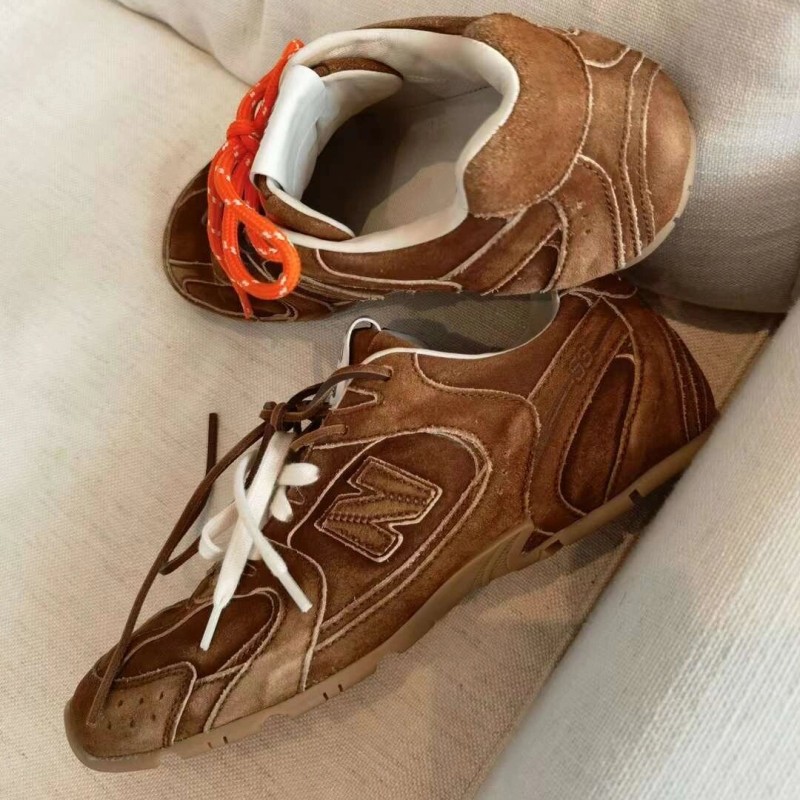 2025新款复古风圆头做旧系带德训鞋女百搭双鞋带休闲阿甘鞋板鞋