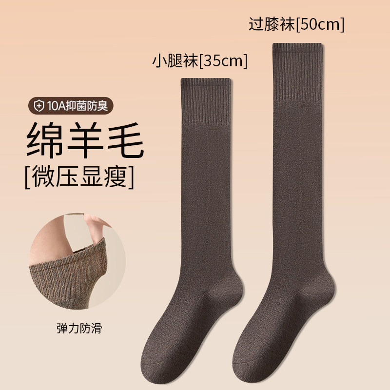 猫人羊毛小腿袜女秋冬保暖长筒袜显瘦美拉德咖色袜子