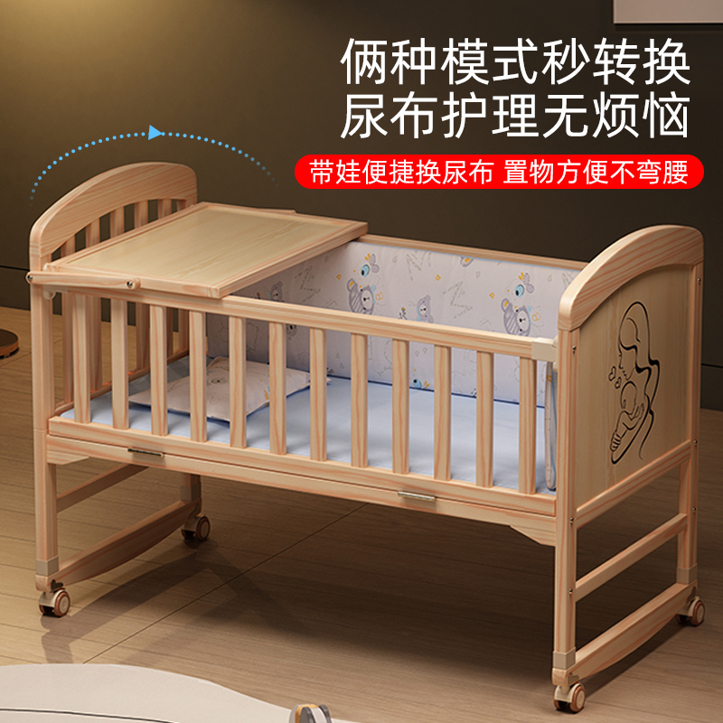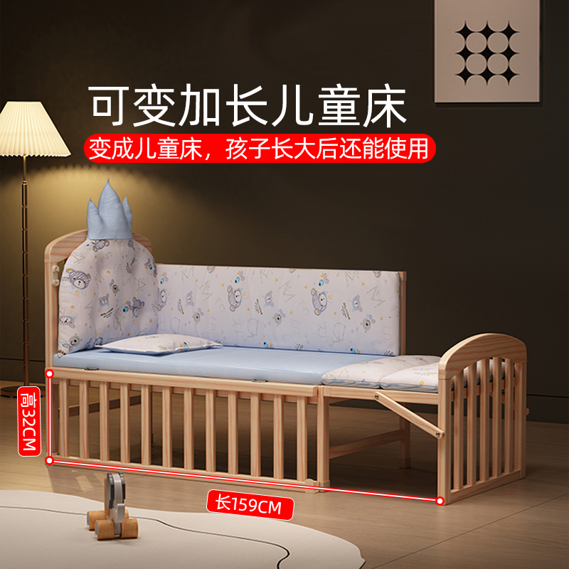 牧童坊婴儿床实木新生儿小床摇篮床可移动bb宝宝床儿童床拼接大床