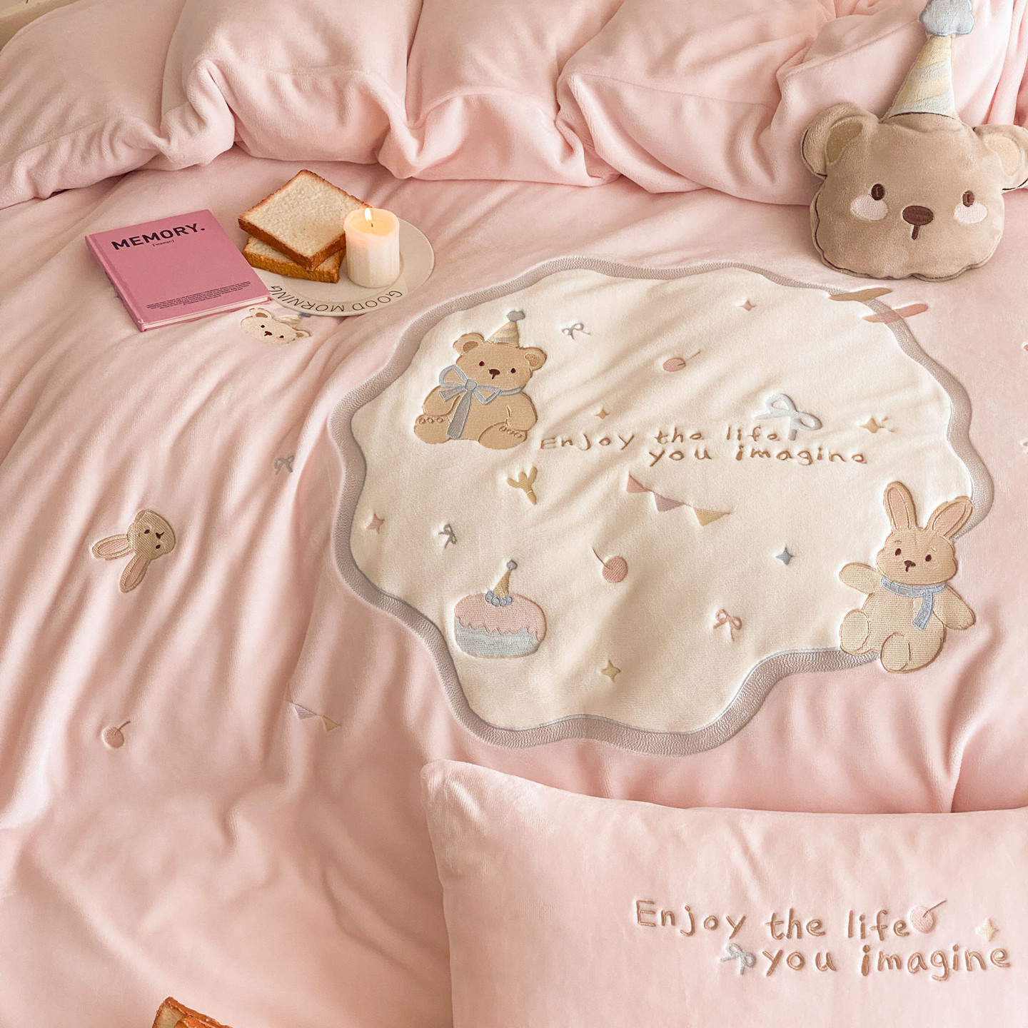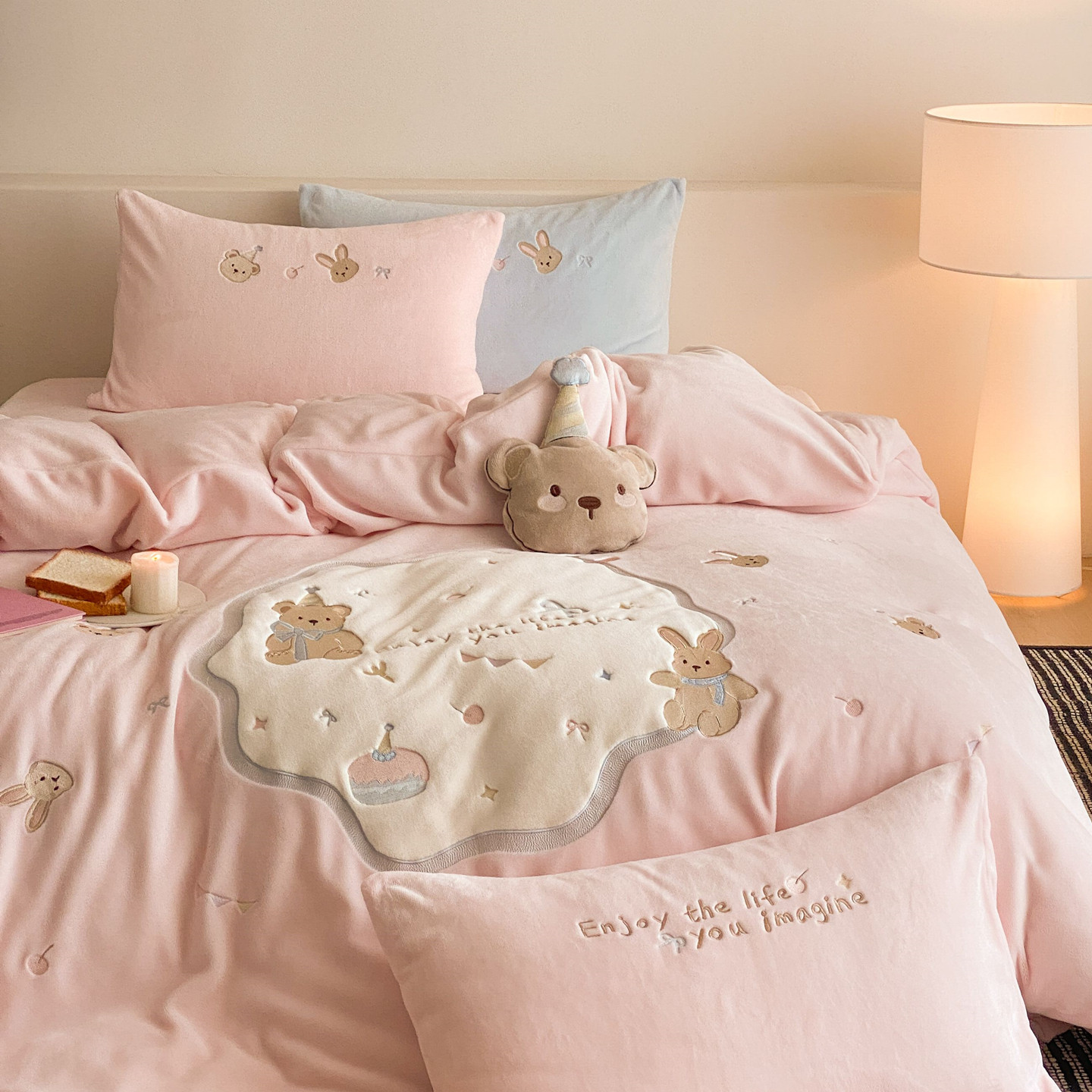 A类母婴级加厚牛奶绒四件套卡通