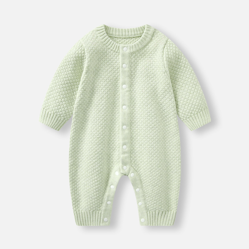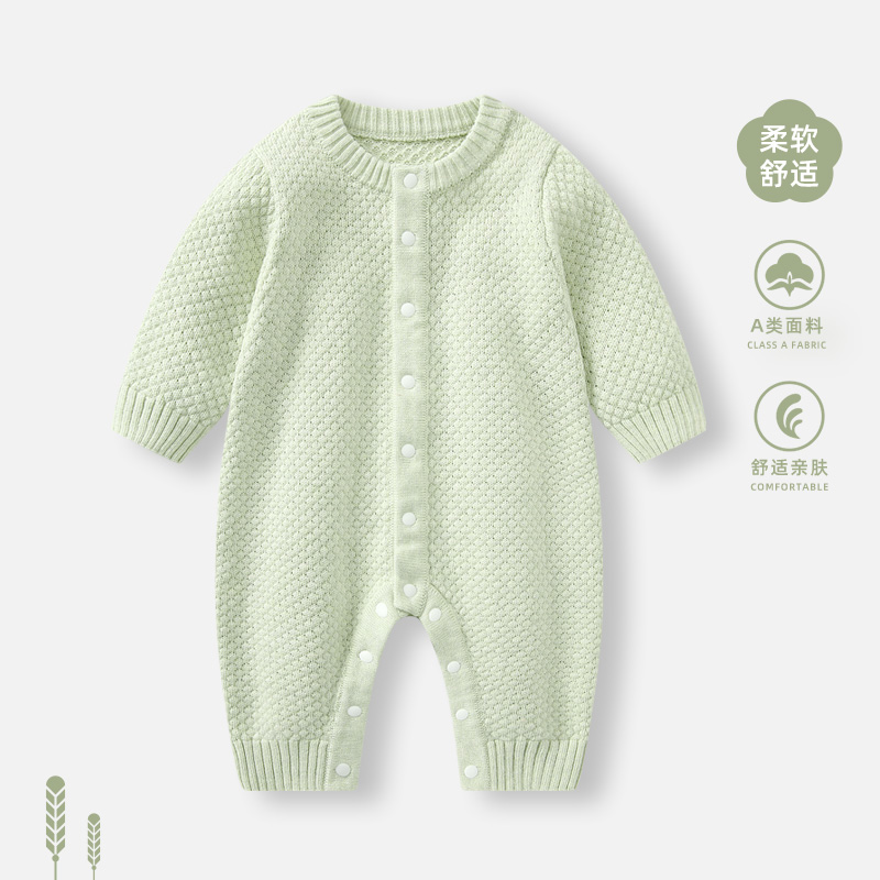 婴儿衣服秋冬连体衣女宝宝满月针织套装幼儿冬装加厚毛衣外出哈衣