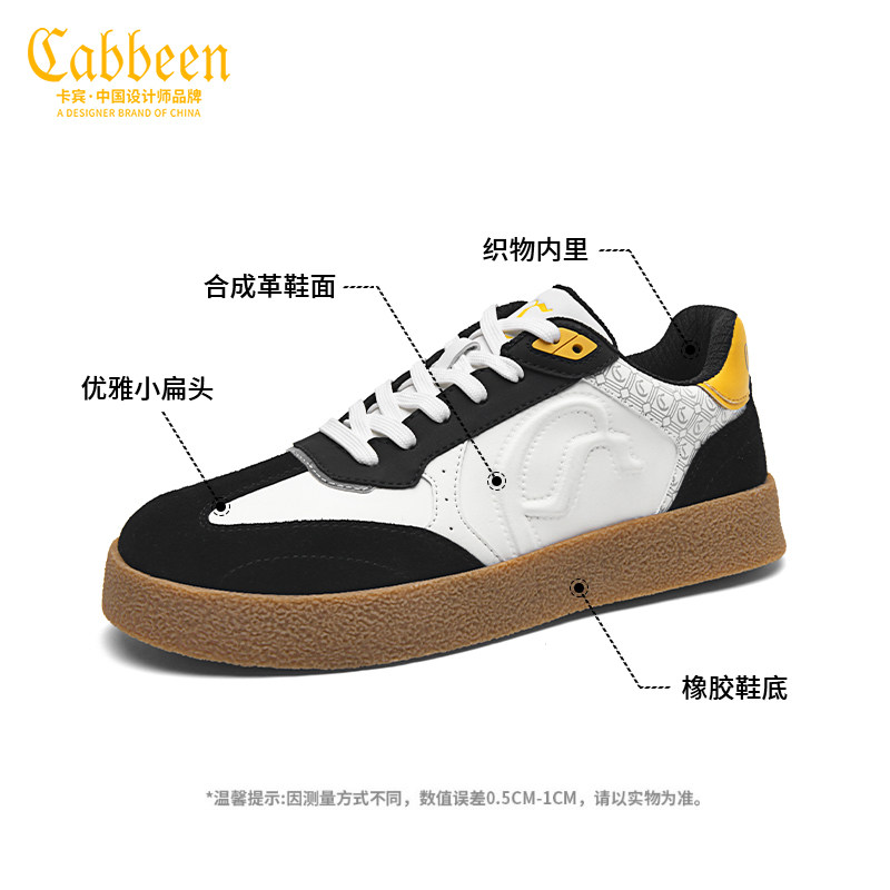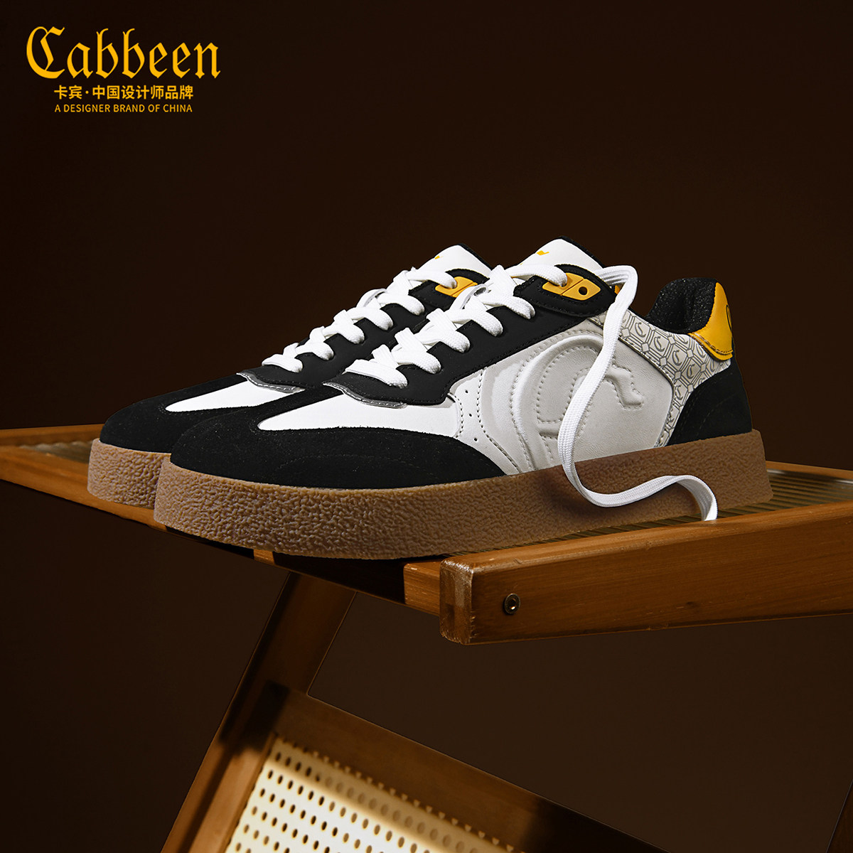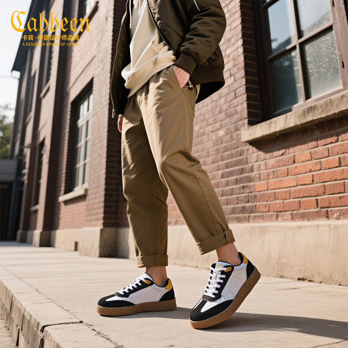 卡宾男士复古板鞋2025新款冬季黑白撞色百搭潮流官方翻毛皮休闲鞋