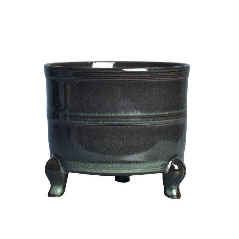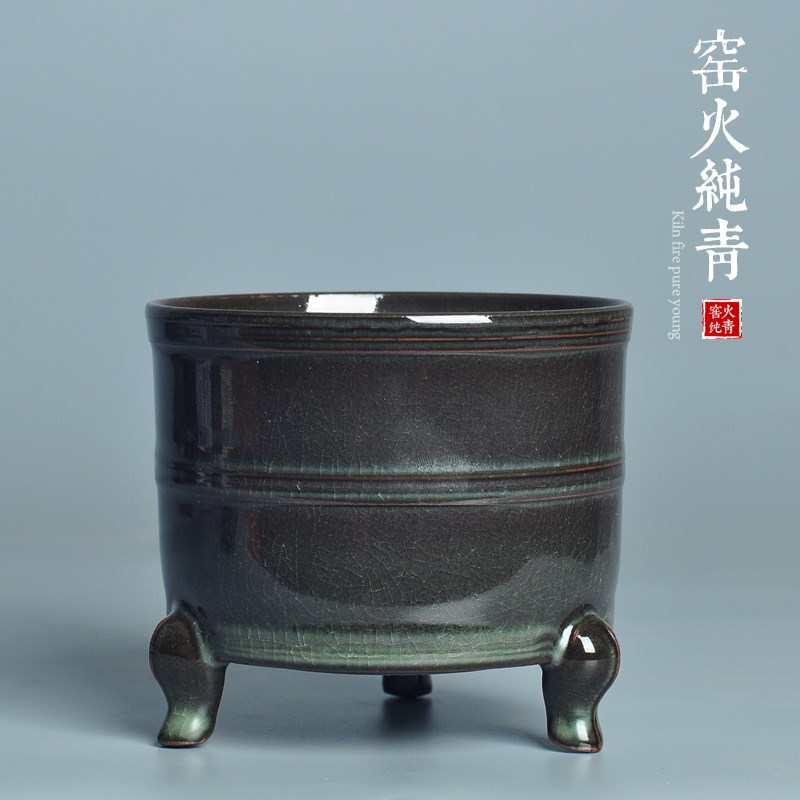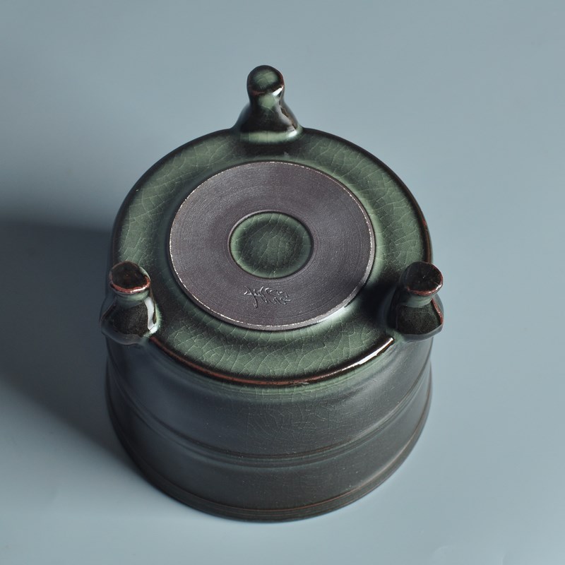 青瓷弦纹炉陈路军全手工仿古陶瓷香薰炉三足炉香道摆件墨青线香炉