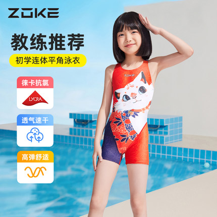 洲克2025新款儿童泳衣女童中大童女孩宝宝专业训练连体平角游泳装