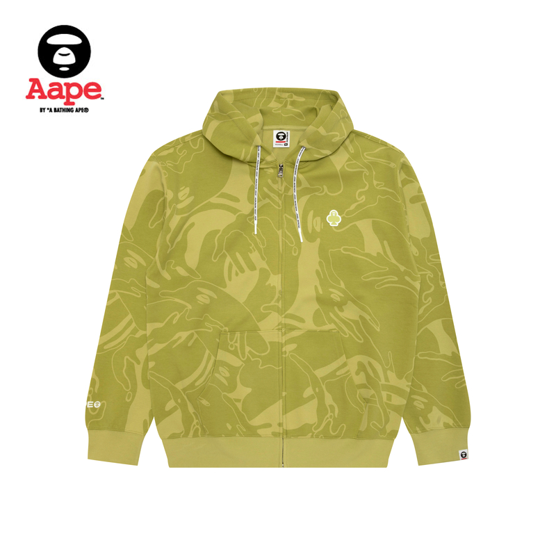 Aape旗舰店男装秋冬迷彩扑克徽章潮流连帽卫衣外套C352XXP