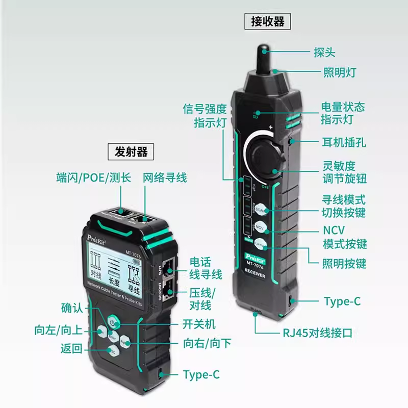 宝工网络测试器寻线仪POE多功能带电寻线器抗干扰检测试仪MT-7076