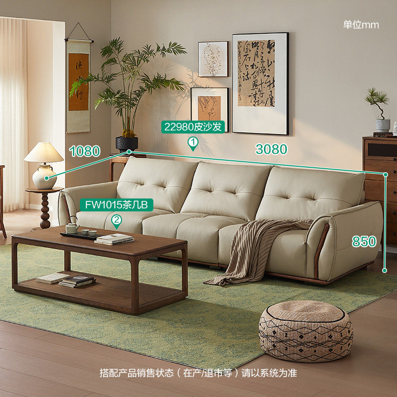 全友家居门店同款 东方风 22980 直排一字型真头层黄牛皮艺沙发