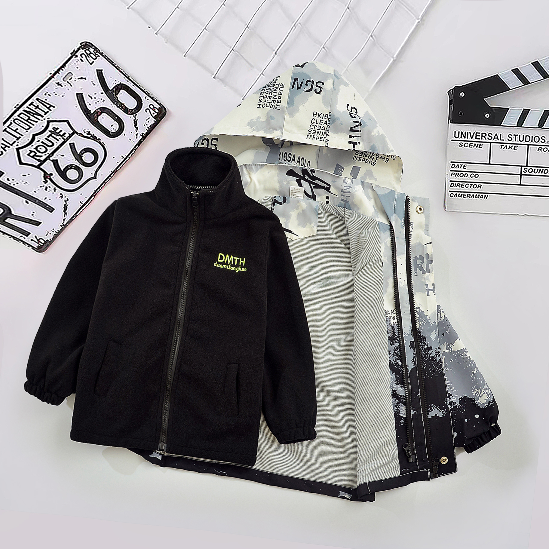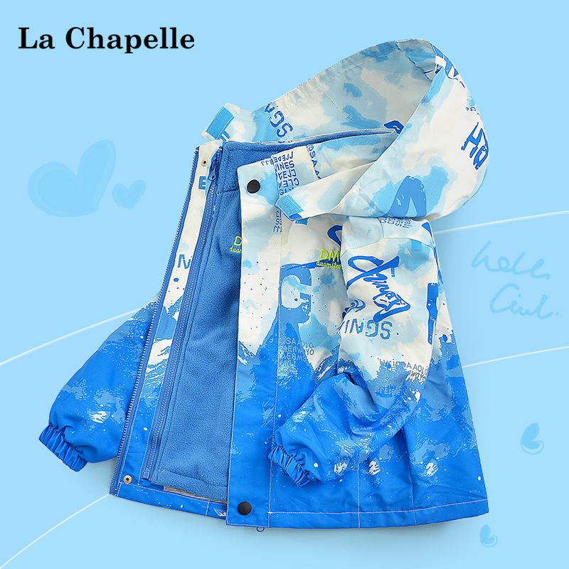 拉夏贝尔男童冲锋衣三合一春秋款2025新款男孩秋装外套儿童防风衣