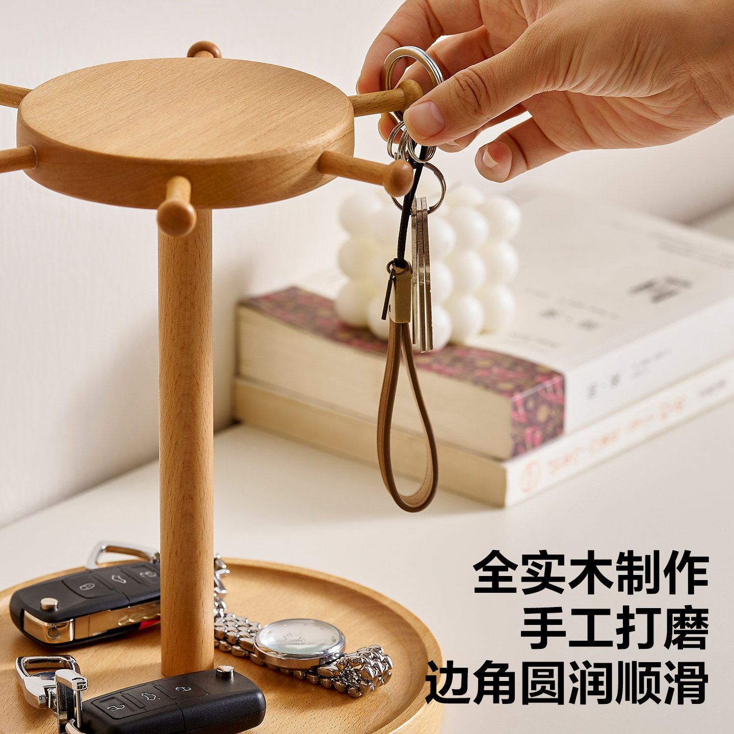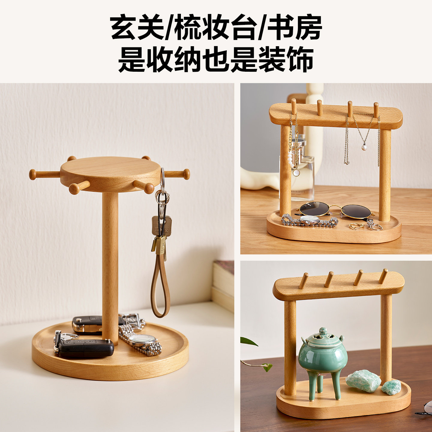 全友家居桌面首饰化妆品收纳盒玄关挂钥匙架原木风实木收纳盘架KD