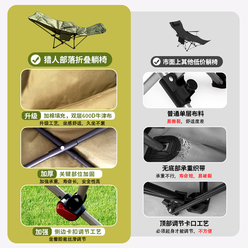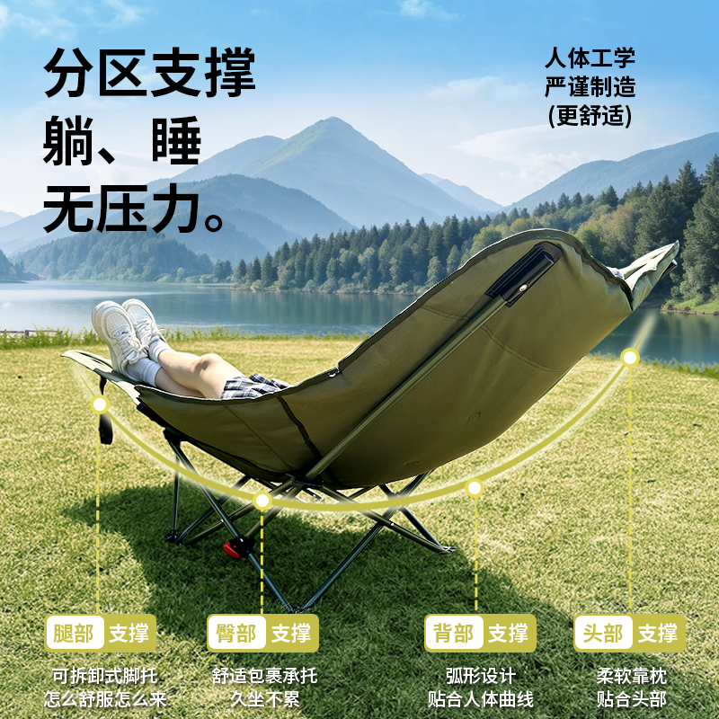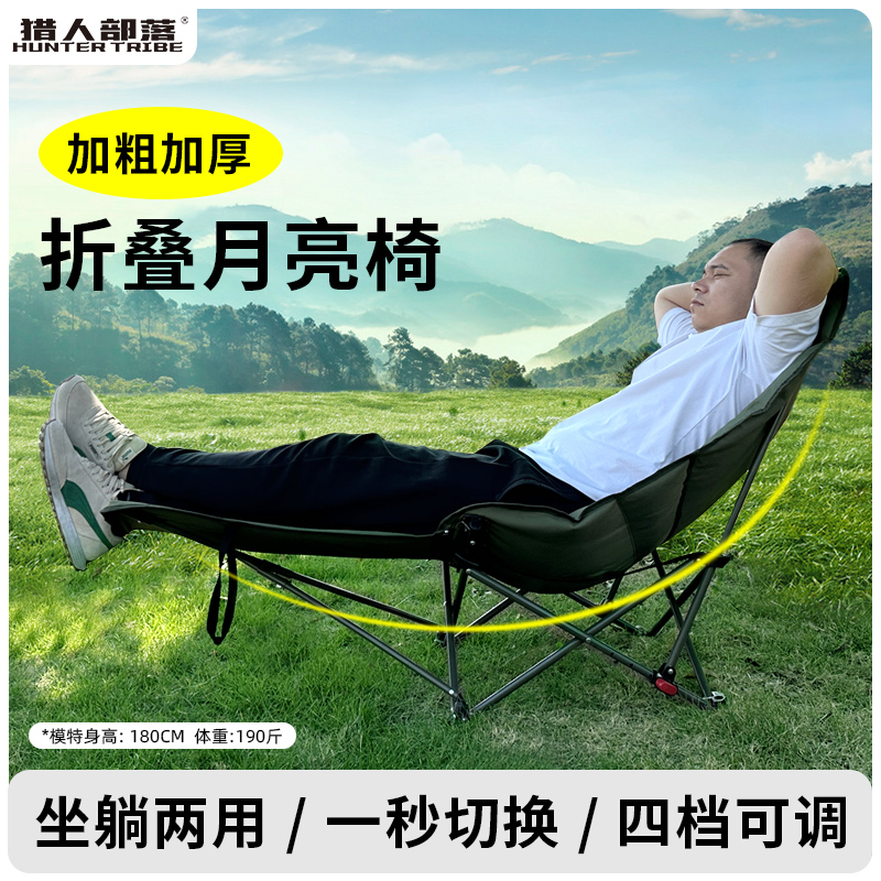 猎人部落折叠躺椅户外折叠椅便携式午休露营月亮椅钓鱼两用沙滩椅