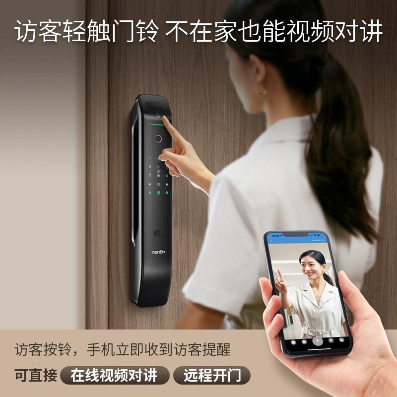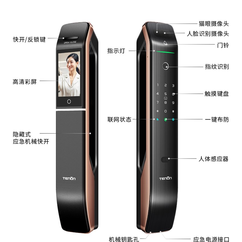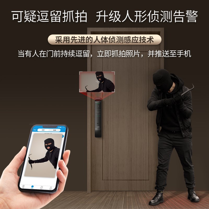 亚太天能指纹锁A6S 家用防盗门智能可视猫眼带屏监控密码电子门锁