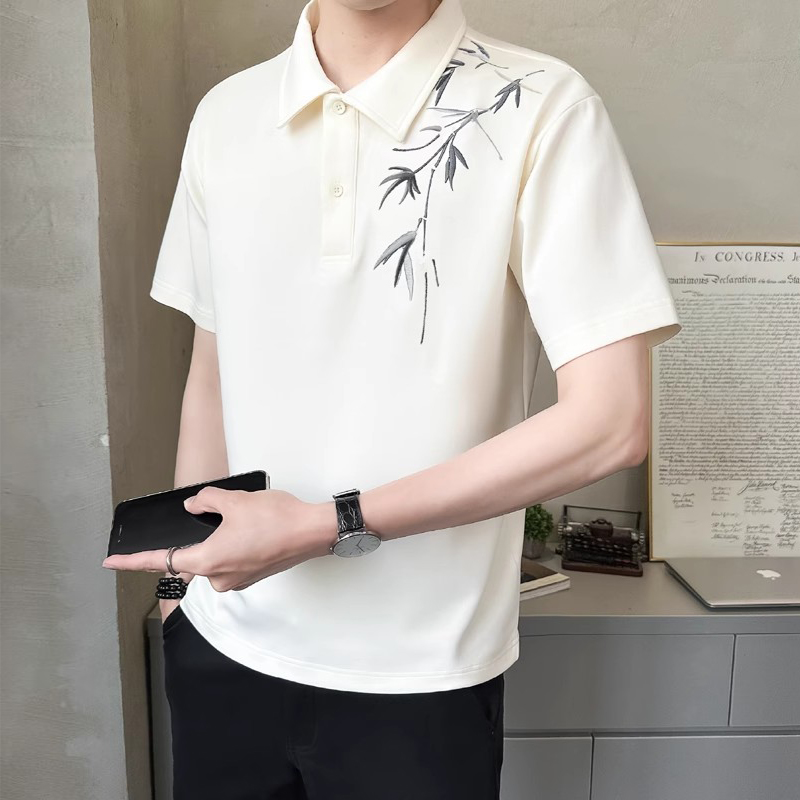 新中式Polo衫男士短袖t恤夏季2025新款潮牌国风刺绣痞帅男装半袖