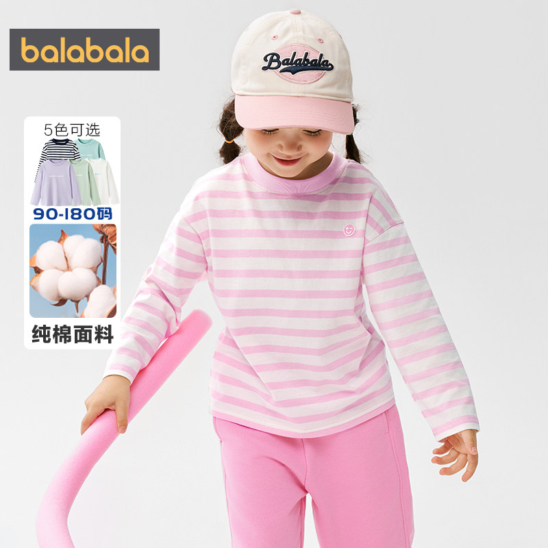 巴拉巴拉儿童长袖t恤男童女童纯棉上衣春秋装新款大童宝宝条纹潮