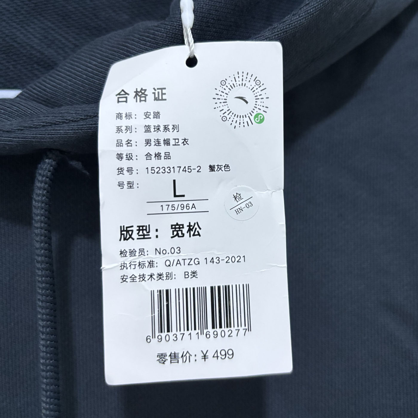 安踏正品秋冬休闲连帽卫衣套头衫
